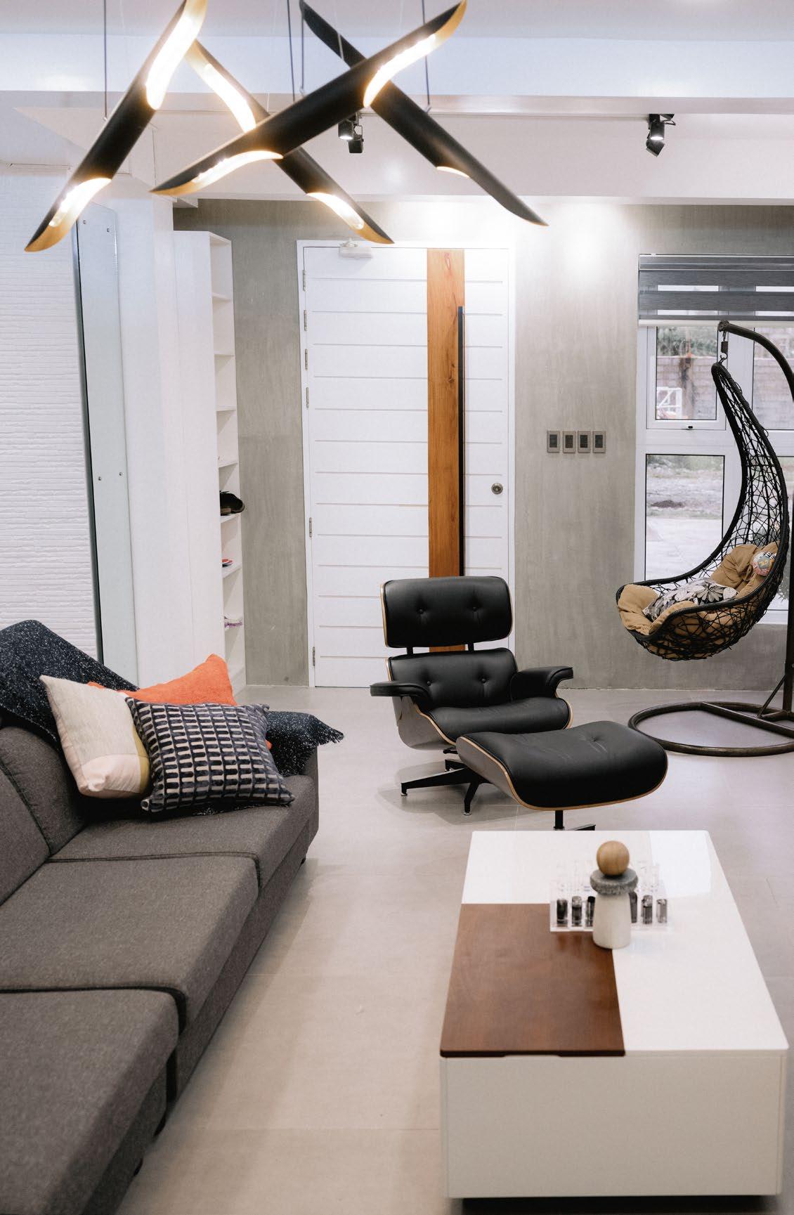 The overall loft space is designed with an industrial aesthetic, with a focus on showcasing the art works of Yayoi Kusama and Client C’s toy collection. Concrete and wood materials are utilized to complement and accentuate these pieces.
