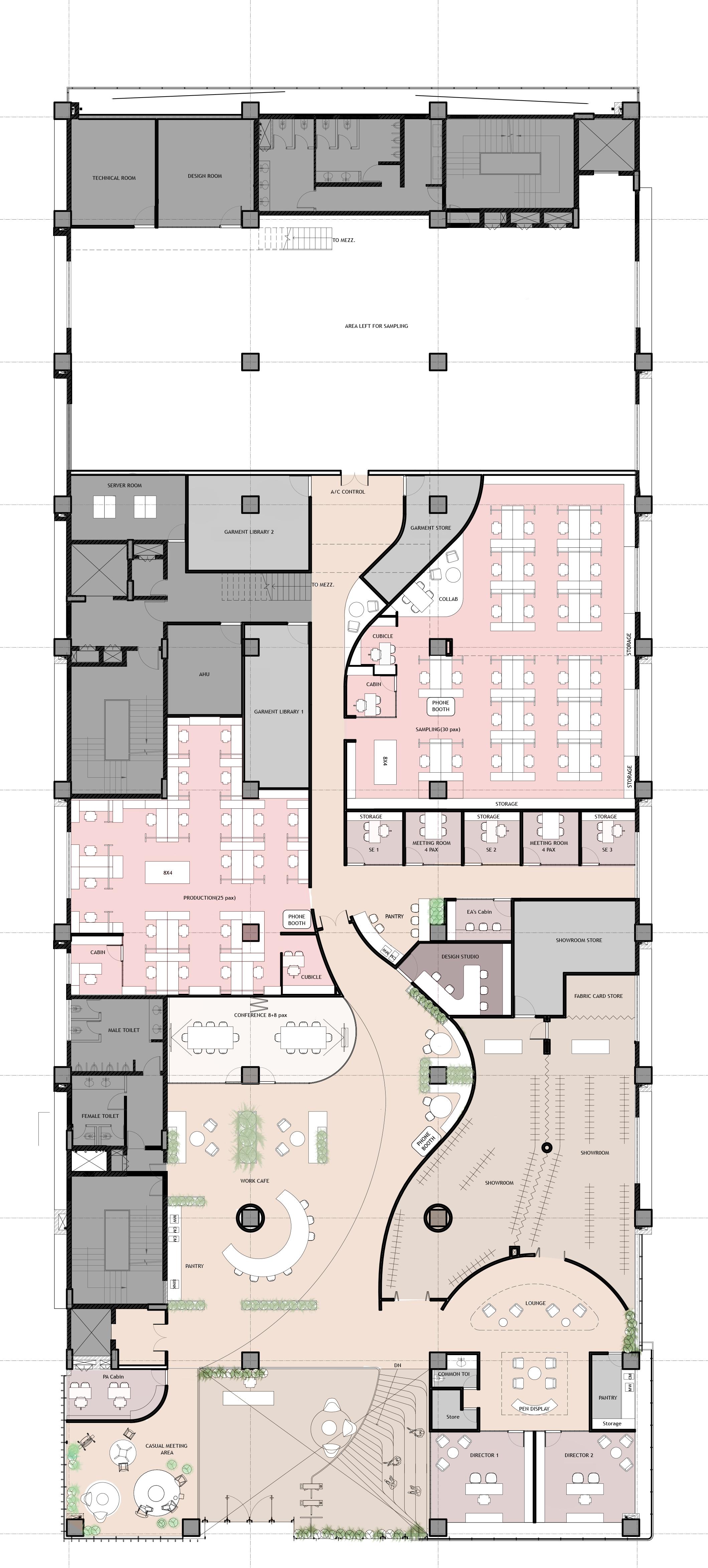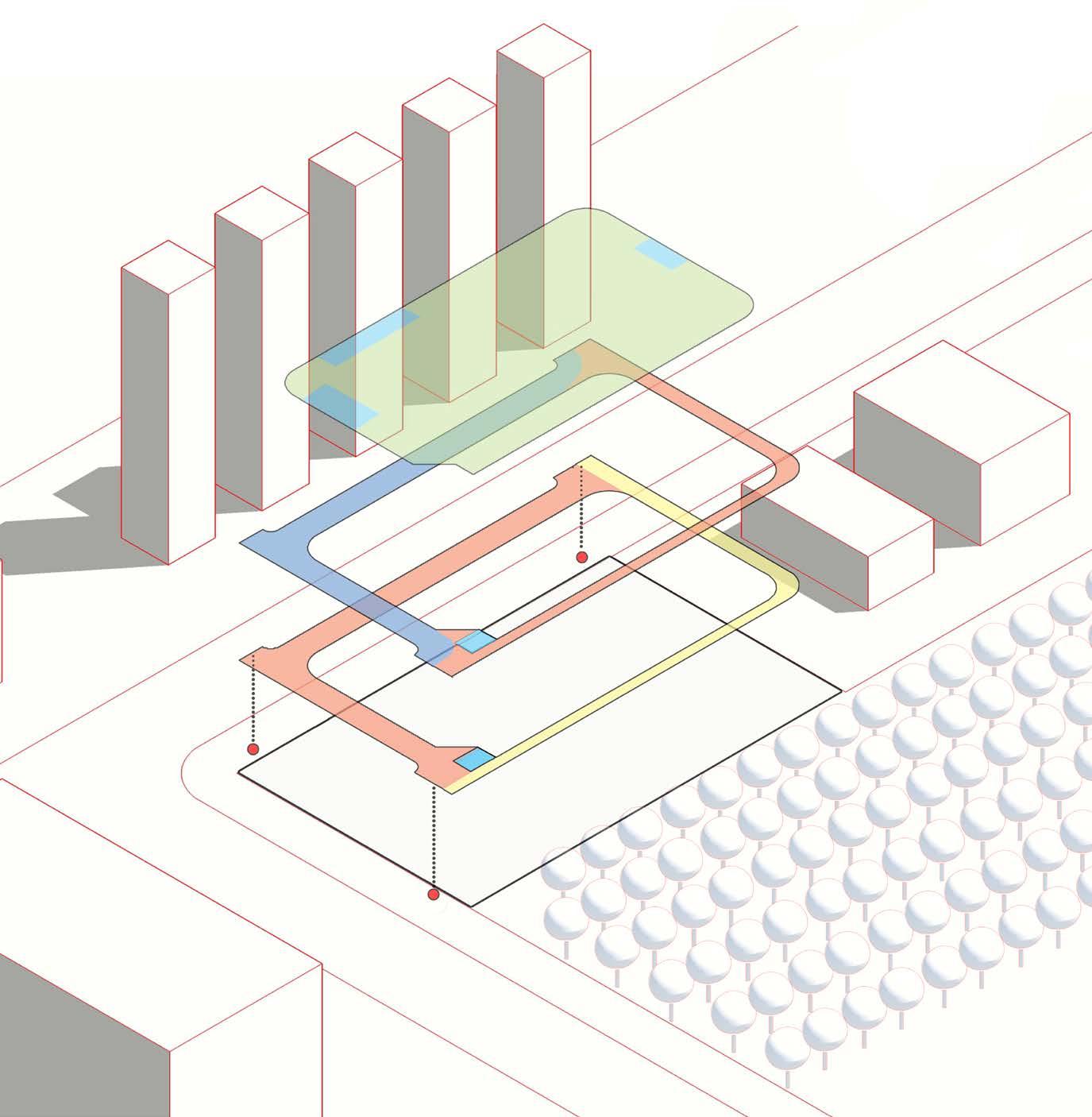 Initially drawn to respond to the site’s inherent character, our vision transcended mere adaptation. Instead, we sought to create a focal point—a diagonal communal and public area embracing the site’s existing trees. Here, under their canopy, we foster a profound sense of communal belonging and shared experience.