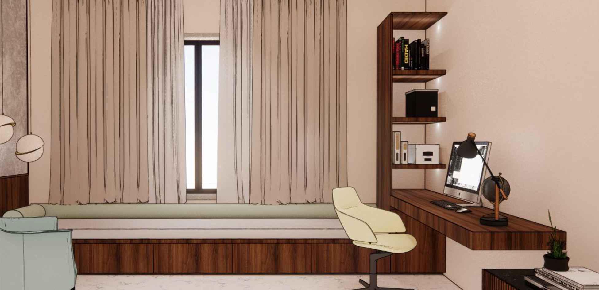 Concept Overview: The design concept for this office space blends the timeless elegance of Classical design with the sleek, minimalist appeal of Contemporary style.