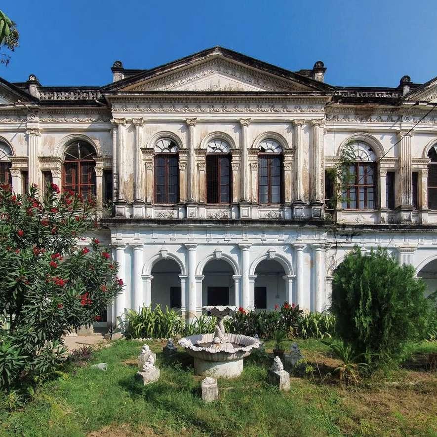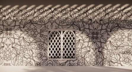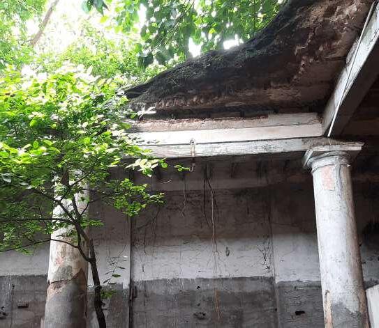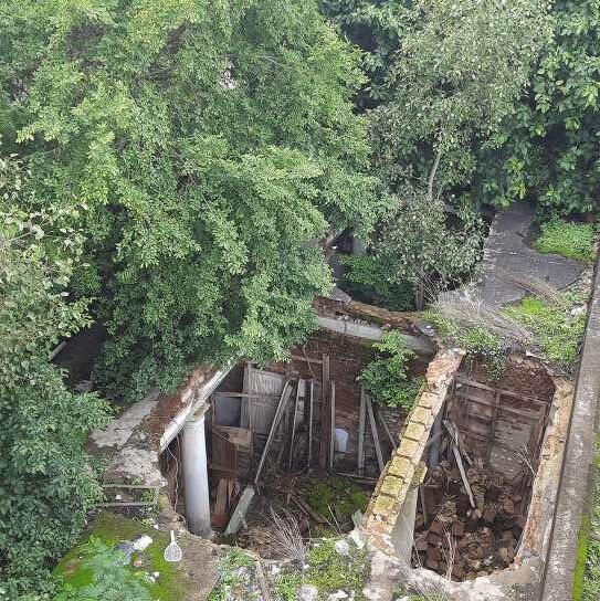 As building is being unused since 1986 we can see multiple damages on the facade of the structure and as well as the interiors. We can also see the vegetation growth in and around the site, as this is damaging the walls and the facade. A detail showing the damaged portion of the facade.