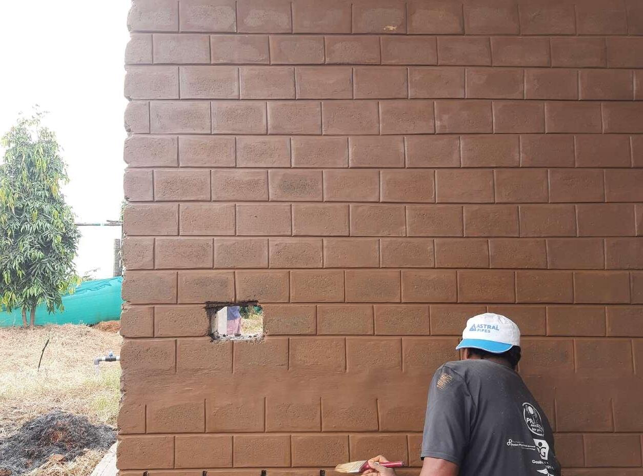 Being produced from local soil, it offers a sustainable alternate to burnt clay bricks/cement concrete blocks. These blocks are compressed in a Press (manual or motorised) and cured.