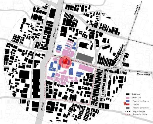 Building use map showing building use around the site as the site is surrounded by residential colonies, commercial and also institutional buildings.