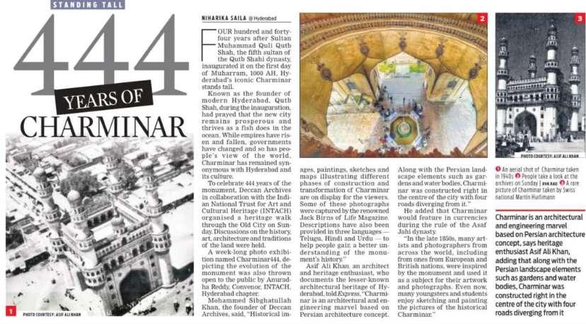 The exhibit got featured in THE INIDIAN EXPRESS news paper saying that”While empires have risen and fallen, governments have changed and so has people’s view of the world, Charminar has remained synonymous with Hyderabad and its culture”.