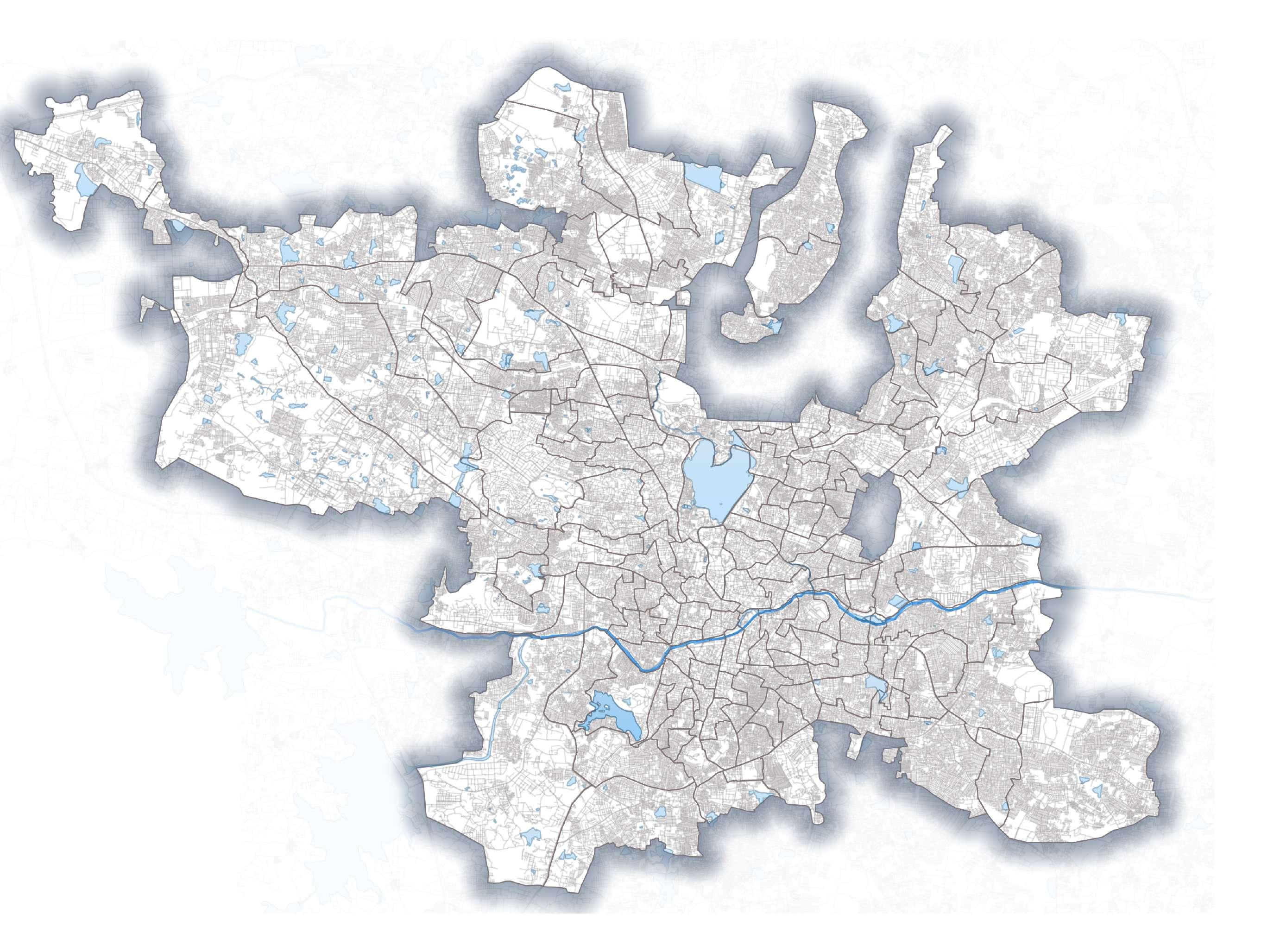 Figure Ground showing relation between Built up space and unbuilt up space around Meenakshi sky Lounge.