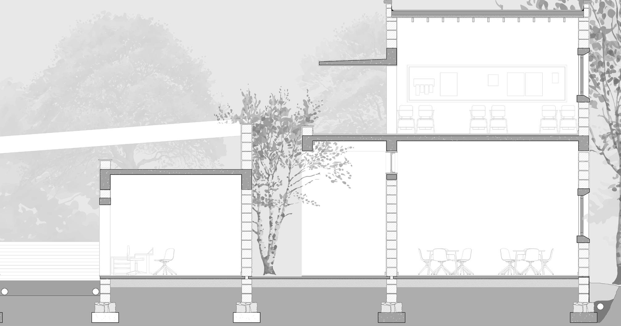 Contribution: Design and planning studies, CAD plans and sections, Sketchup 3D Study Models.