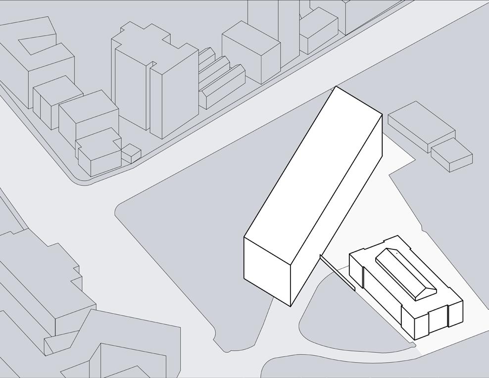 3 Voids are introduced within the cuboidal forms to preserve views of the heritage structure, creating porous and adaptable spaces around the main structure.