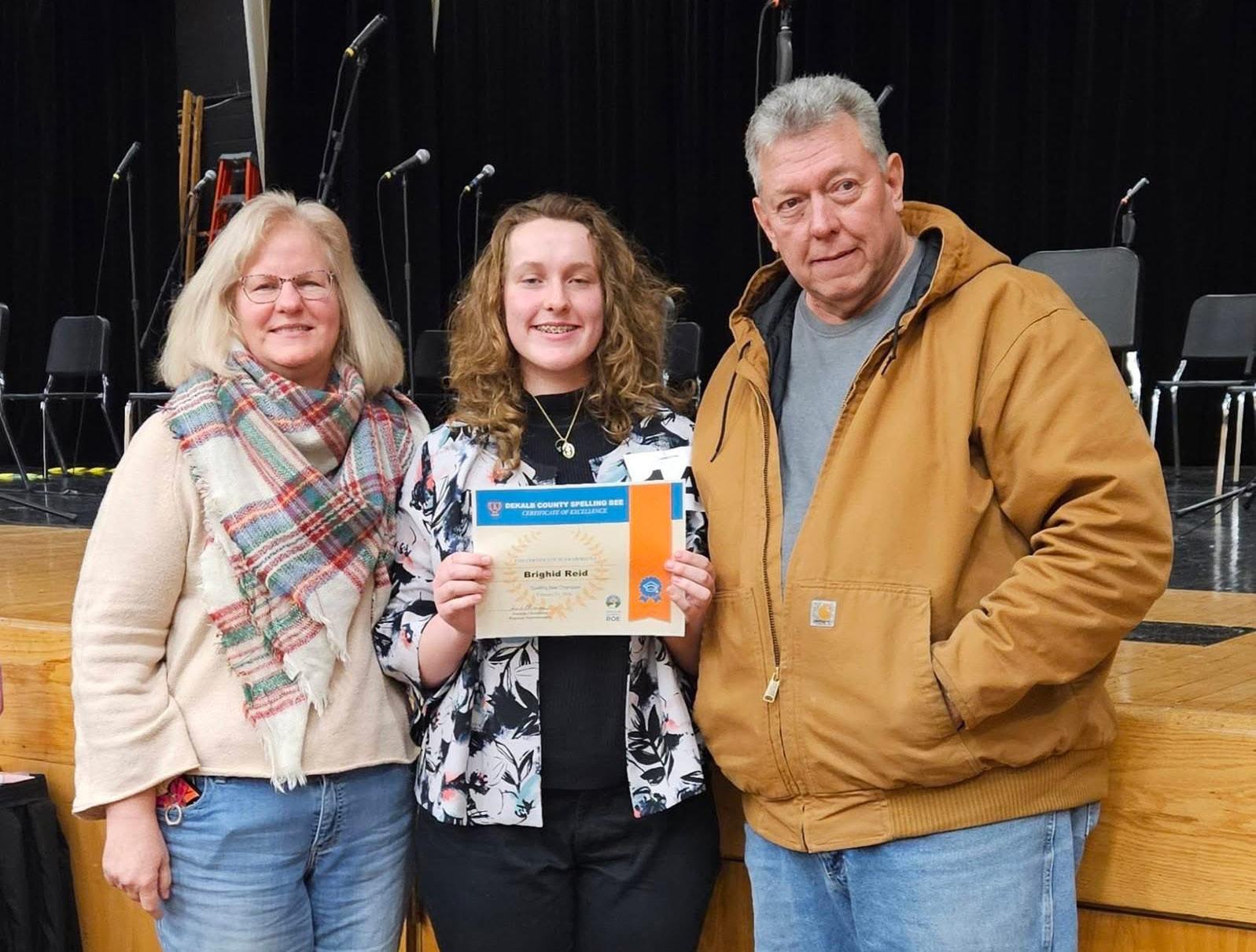 After winning the DeKalb County Regional Office of Education Spelling Bee for the second year in a row on Feb. 21, Brighid Reid, 14, of Sandwich, will return to the Scripps National Spelling Bee on May 26.