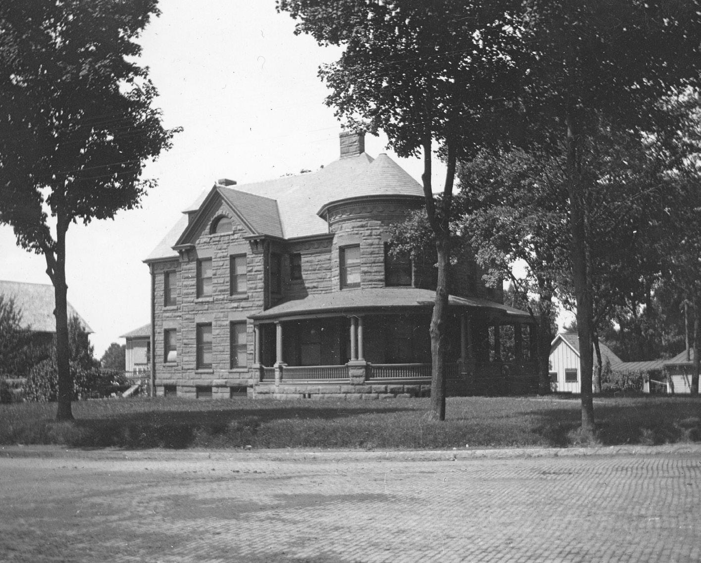 The Dr. Edward Mayo house is seen at the northwest corner of First Street and Lincoln Highway in DeKalb, circa 1900.