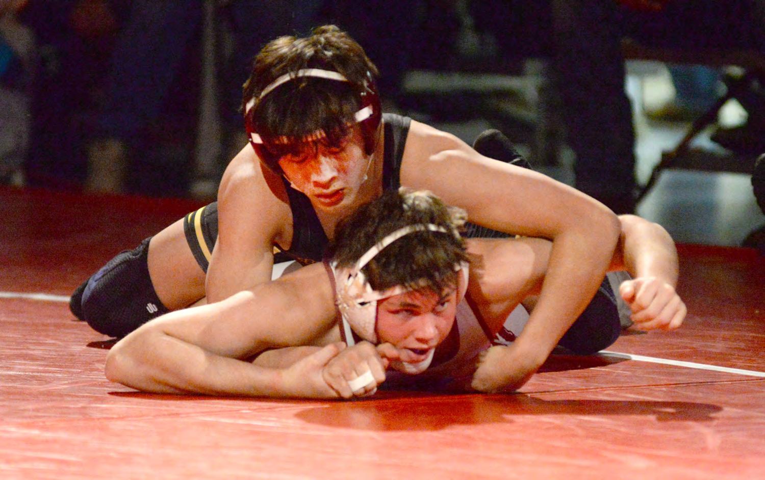Riverdale’s Blake Smith (top) and Sterling Newman’s Briar Ivey wrestle at 157 pounds Feb. 15 in the finals at the Class 1A Oregon Sectional. Smith placed second to advance to this week’s state finals. High school sports roundup on page 13.
