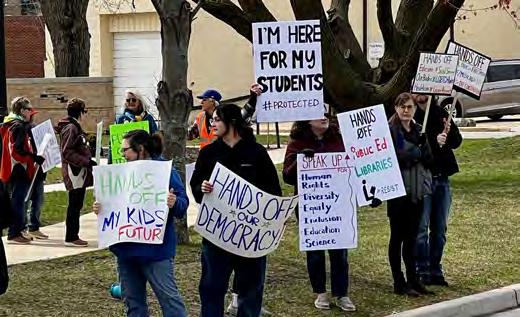 Hundreds of people took part in two Hands Off! rallies in the area April 5 to let everyone know how they feel about recent actions and decisions by President Donald Trump and his billionaire consultant Elon Musk.