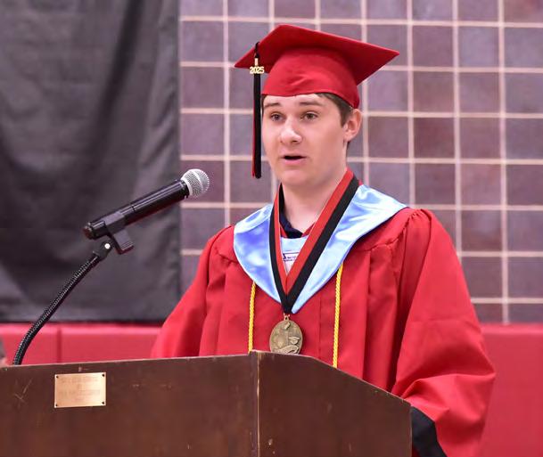 Zach Murphy, Erie High School Class of 2025 valedictorian, delivers words of encouragement to fellow graduates during commencement May 18.