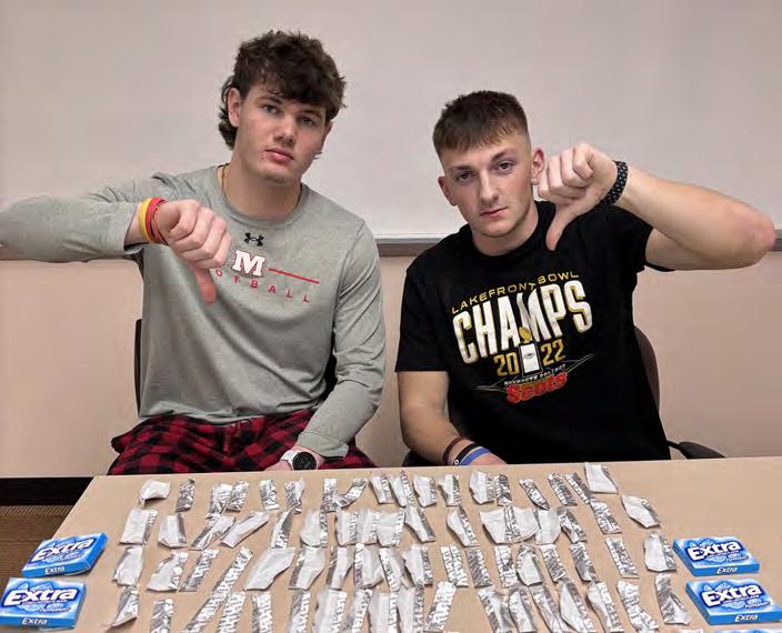 Photo provided by Monmouth College Roommates and best friends Kyler Pessman (left) and Jackson Bergren used their final semester at Monmouth College to create a series of viral videos.