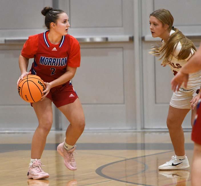Morrison’s Amelia Wetzell looks to pass during a game against Forreston at the Forreston High School Girls Basketball Thanksgiving Tournament on Nov. 21.