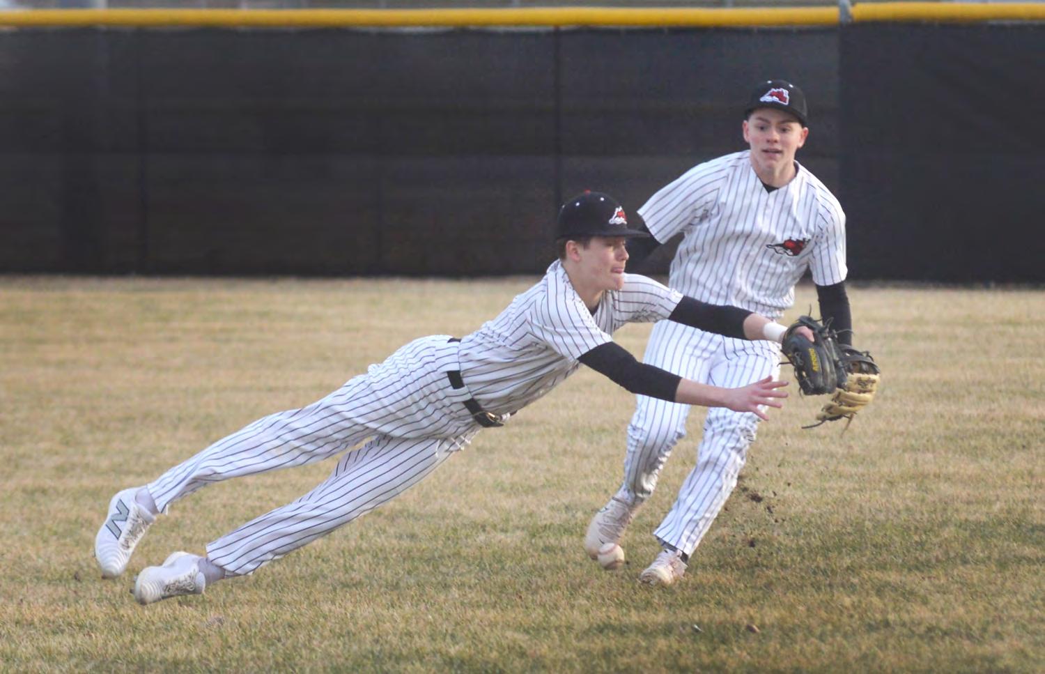 Fulton’s Caden Wilkin dives for a line drive as right fielder Evan Folk backs up the play during a game against Morrison on March 21 in Fulton. More photos on page 3. High school sports roundup on page 13.