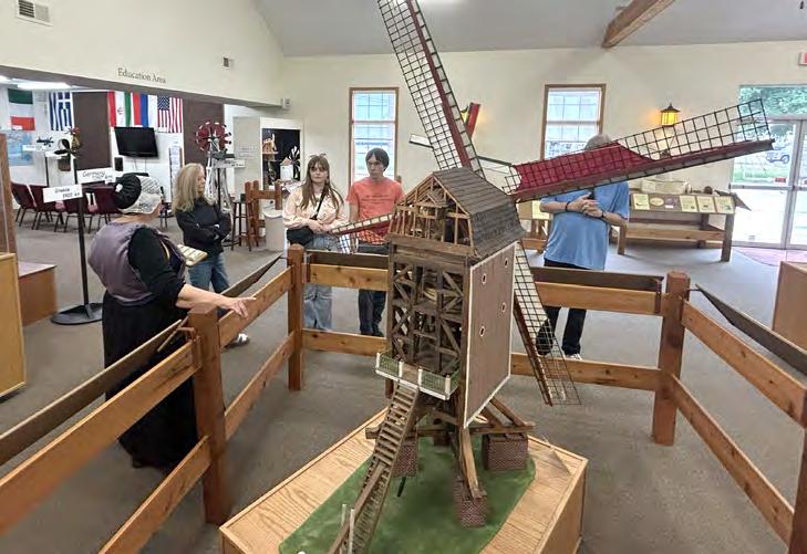 Kathy Bielema, a volunteer at the Windmill Cultural Center in Fulton, talks about the history and types of windmills as she gives a tour at the center during the 25th anniversary celebration of Fulton’s de Immigrant windmill June 7.