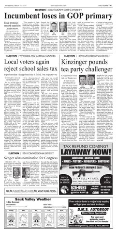 Local voters again Kinzinger pounds reject school sales tax tea party challenger Superintendent ‘disappointed that it failed,’ but respects vote BY KATHLEEN A. SCHULTZ kschultz@saukvalley.com EXT