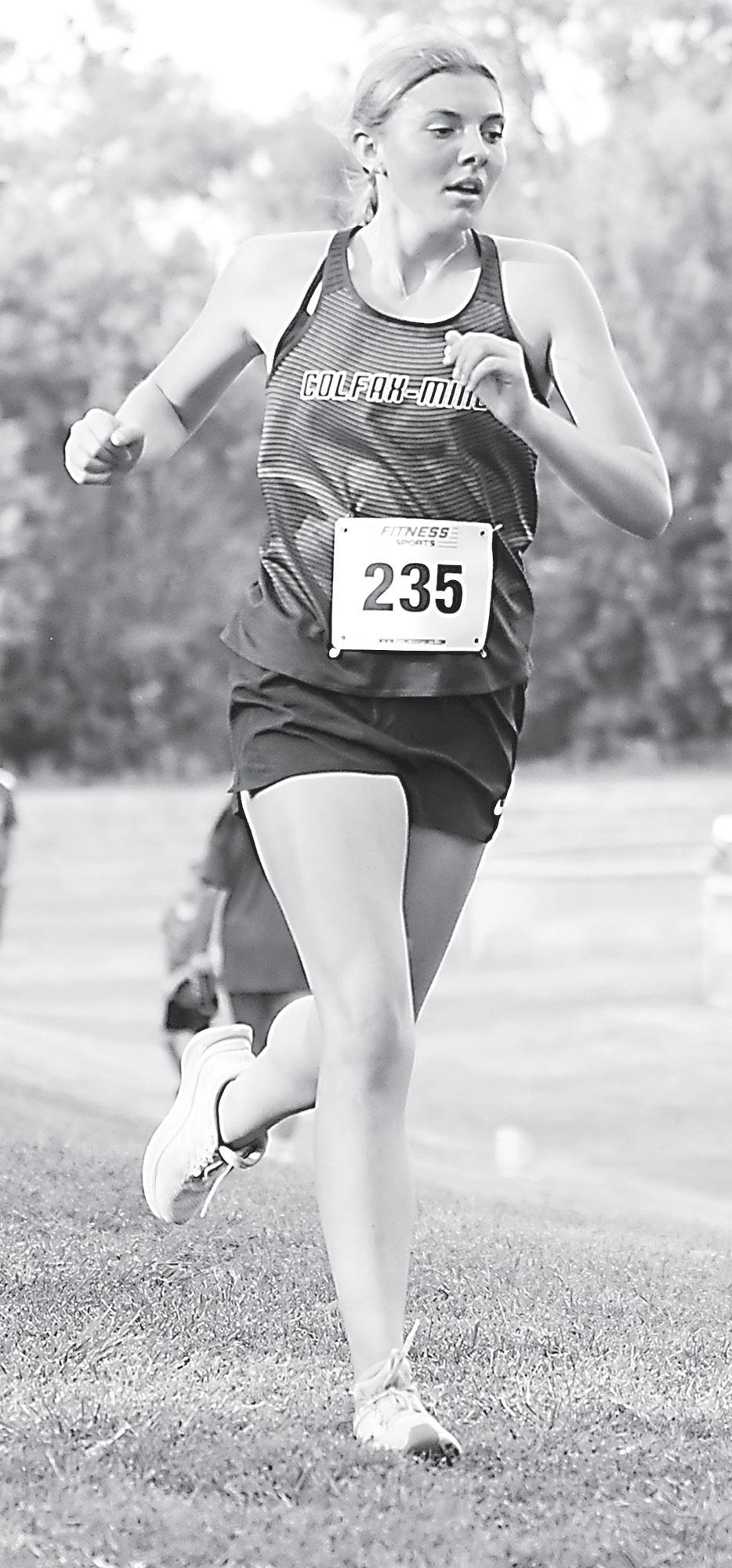 Troy Hyde/Jasper County Tribune Colfax-Mingo junior Mallory Sipma runs in the team’s home meet earlier this season. Sipma helped the Tigerhawks to their best finish of the season at West Central Valley on Oct. 3