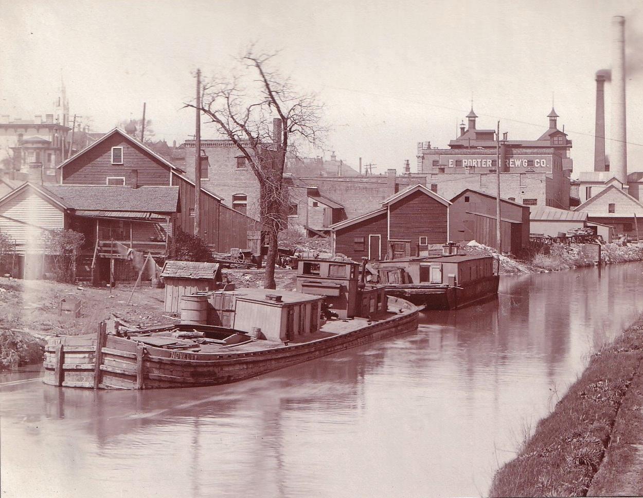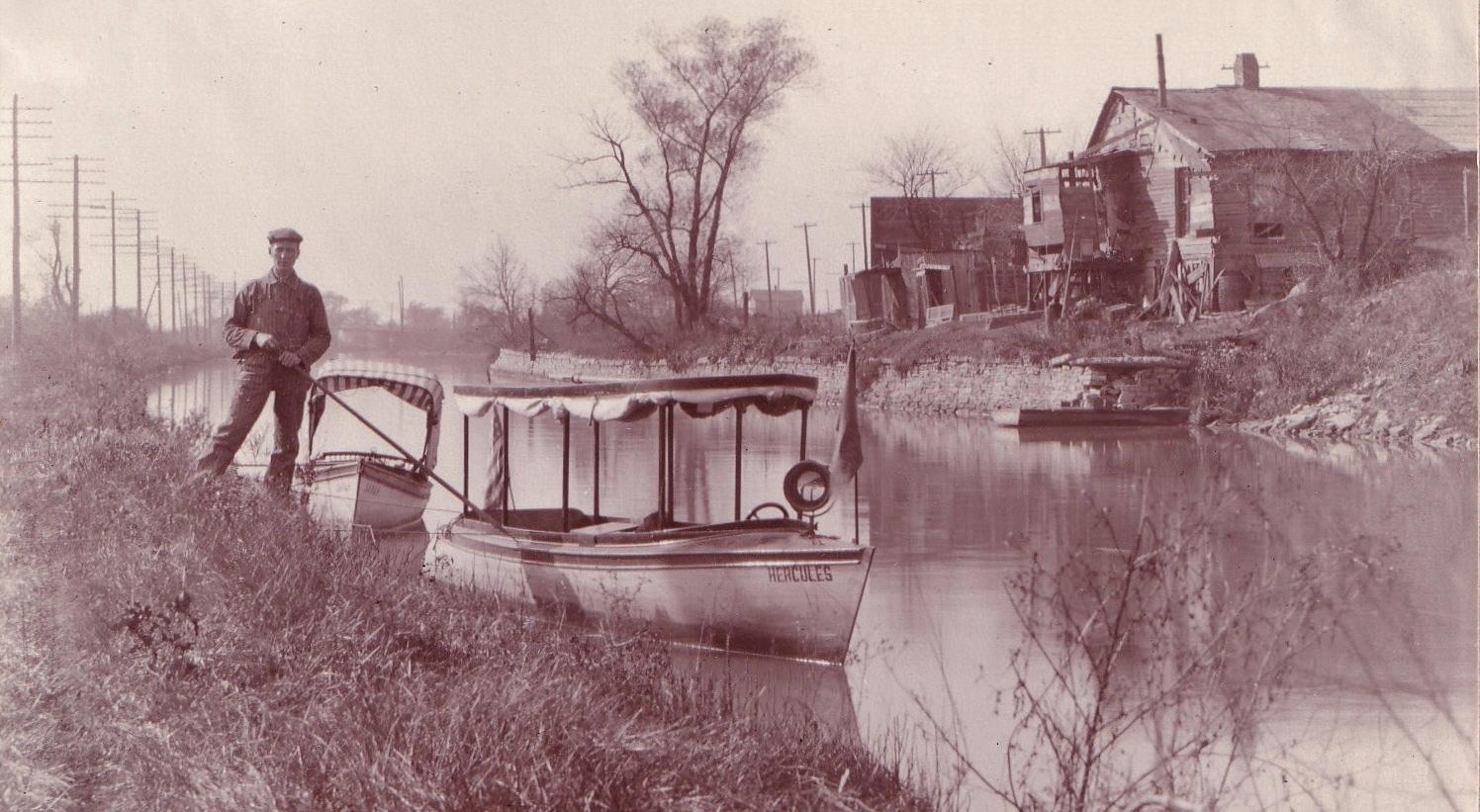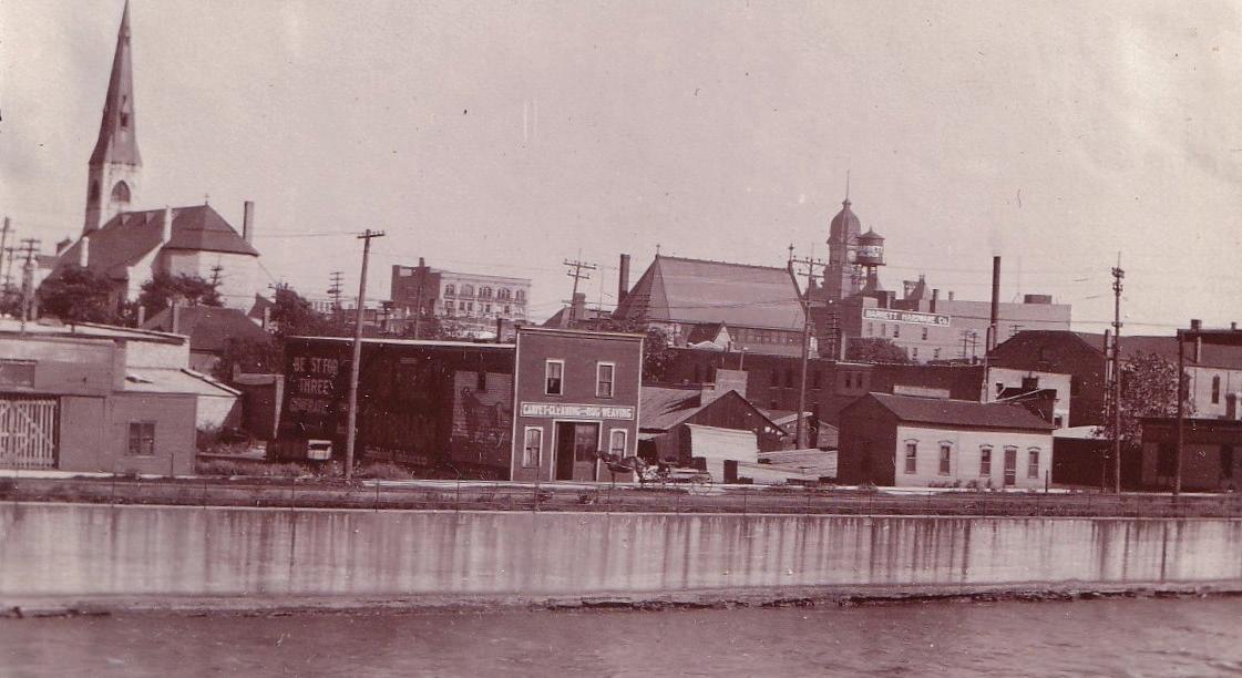 East bank of the Des Plaines River looking towards Downtown Joliet. Courtesy of the Joliet Area Historical Museum.
