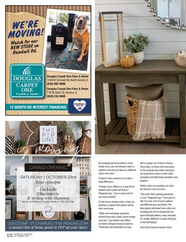 By changing the throw pillows in the family room, you can interject color or patterns and can just take on a different look in the room.” It doesn’t take a whole lot to make a huge difference. “Foliage vases, pillows or a new throw blanket with a plaid, fall theme,” Peppeard says. “Less is more and it’s just more tasteful.” As the leaves change colors, many are looking to capture that palette within their own home. “Right now everybody gravitates toward those dark, green, burnt orange and reds,” says Kaitlyn Jane Miller, an interior designer based in Geneva. “Neutrality and minimalism are big.