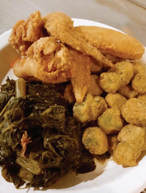 “It’s Southern food, it’s Mexican, it’s Jamaican, it’s all a perfect combination,” Howery says. And always save room for her incredible desserts, says customer Karen Kauffman of Elgin. Kauffman and her colleagues work nearby in downtown Elgin and discovered the restaurant during a lunch break last year. It quickly became a go-to spot. “It’s a fusion of foods,” Kauffman says. “It all works.” Howery opened the restaurant in September 2020, mid-pandemic and at a time when many businesses were struggling as a result of restrictions. She launched her first restaurant in DeKalb, serving chicken wings and sweet potatoes to hungry college students, then decided to move to Elgin where she was drawn to the community. Her culinary foundation was in her grandparents’ kitchen, where her grandmother would “call her back” to the kitchen to help prepare meals, meanwhile sharing many of the recipes and techniques. “I come from a huge cooking family. My grandparents had 12 children as well as grandchildren and greatgrandchildren,” Howery says. “On the weekends we used to come together and have massive birthday dinners, holiday dinners. I learned to cook in bulk.” Howery decided to try cooking for others by preparing her family dishes and delivering them on weekends to barbershops and beauty salons she knew. With these businesses, not located near other restaurants, she soon had customers coming in on the weekends and requesting her homemade macaroni and cheese, fried okra and entrees of jerk chicken. After years of cooking on the side in addition to her daily work and raising her young son, she decided to take their encouragement and open her own restaurant. Her food has become something of a legend, with people planning their travels with a visit to her restaurant. “Last weekend I had someone who was on their way to Florida and they stopped in,” she says. “On weekends people drive out from Schaumburg, from Rockford and from the nearby areas too.” But Howery isn’t just preparing dishes for her customers and handling corporate catering assignments for nearby businesses. She is using her cooking skills to build collaborations with fellow business owners too. Kauffman, a partner at DPK Creative in Elgin, says it’s this type of collaborations among businesses that make Elgin a great place to live, work and visit. “There really is a spirit of coming together,” Kauffman says. “And for creative businesses, it is kind of a mecca for creative businesses and arts.” The flavor and diversity of Elgin’s restaurants can appease every palate, and with destinations like Moni’s Soulfood Fiesta, there is always a reason to try something new. Just be sure to save room for dessert. MONI’S SOULFOOD FIESTA 13 Douglas Ave., Elgin 224-268-3197 www.monissoulfoodfiesta.com