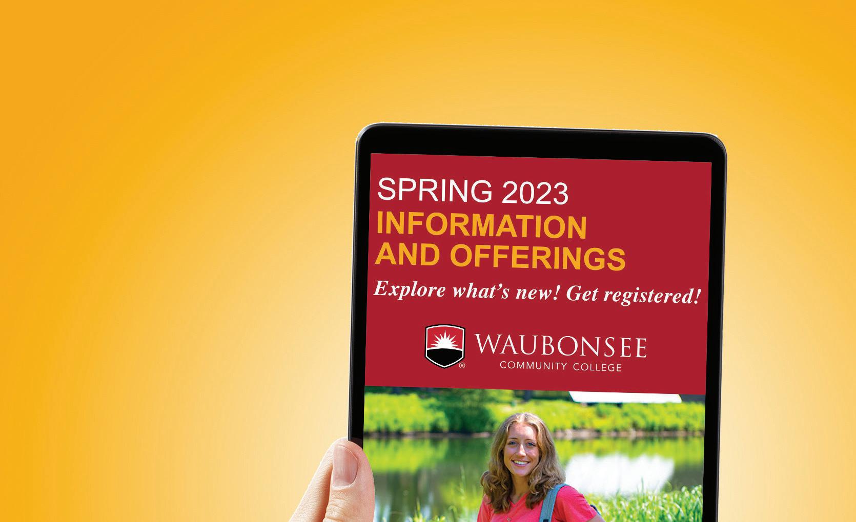 To access our interactive schedule, which lists class dates and times, visit waubonsee.edu/schedules NEW YEAR NEW POSSIBILITIES COURSES START FEB.JAN.17, 13, OR MARCH 20 Explore Your Options. Access Our Course Schedule. SCAN FOR SCHEDULE Waubonsee does not discriminate on the basis of any individual’s actual or perceived race, color, creed, religion, gender, gender identity, sex, sexual orientation, age, national origin, ancestry, veteran’s status, military status, unfavorable discharge from military service, marital status, order of protection status, pregnancy, disability, citizenship status or any other characteristic protected by law in its programs or activities. Inquiries regarding this policy may be directed to: Michele Needham, Title IX/ADA/Section 504 Coordinator, Route 47 at Waubonsee Drive, Sugar Grove, IL 60554,