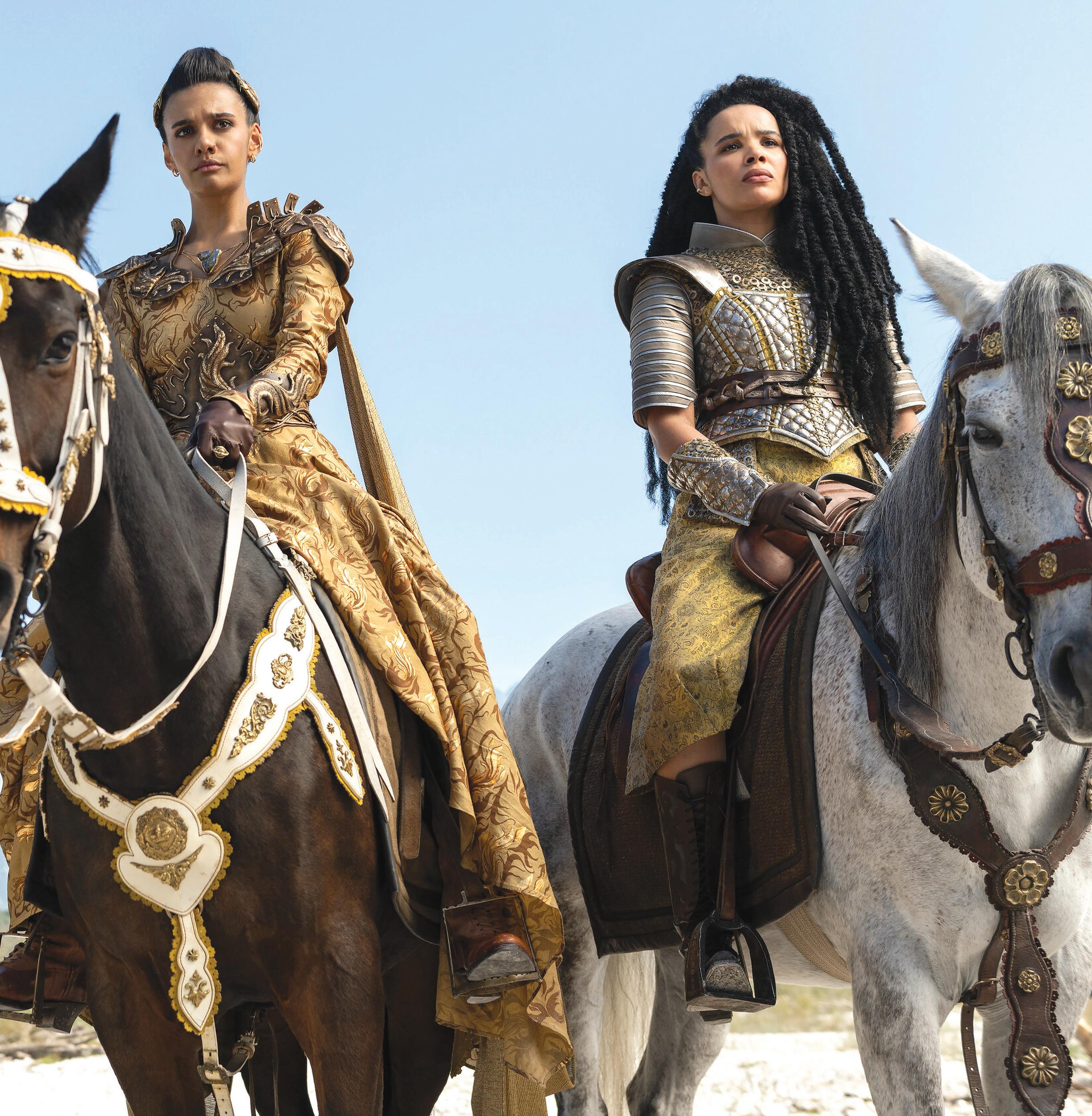 Madeleine Madden and Zoe Robins in “The Wheel of Time”