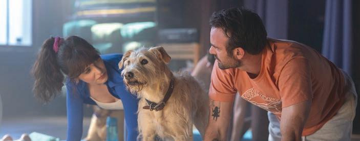Zooey Deschanel, Gus the dog and Charlie Cox star in “Merv”