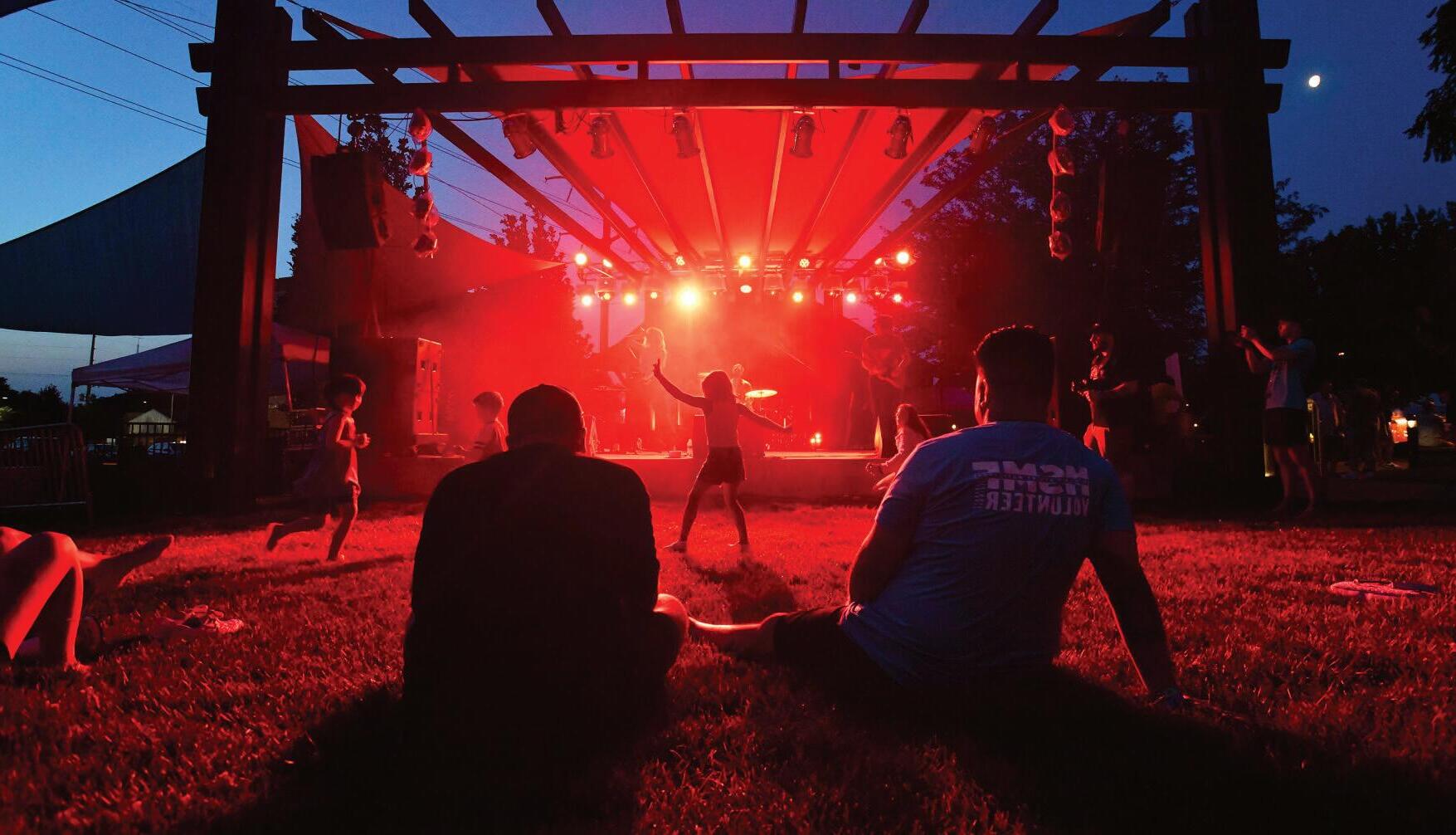 Left to right, Skylar Curby, 9, left, and Adalea Handson, 8, both of Bourbonnais, enjoy ice cream as they watch a performance in 2023 at Manteno’s Square on Second. The South Side Social Club performs on the main stage in 2023 during the Bourbonnais Friendship Festival at the Bourbonnais Municipal Center. The band will return this year.