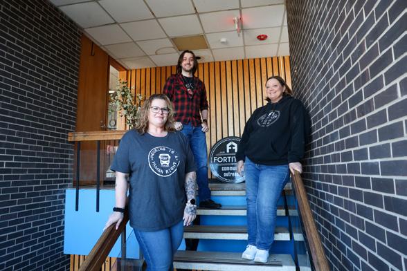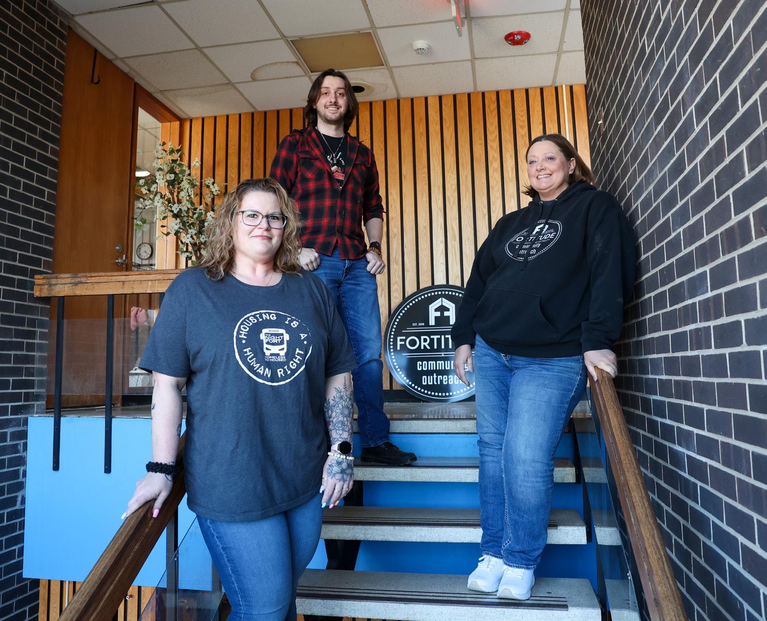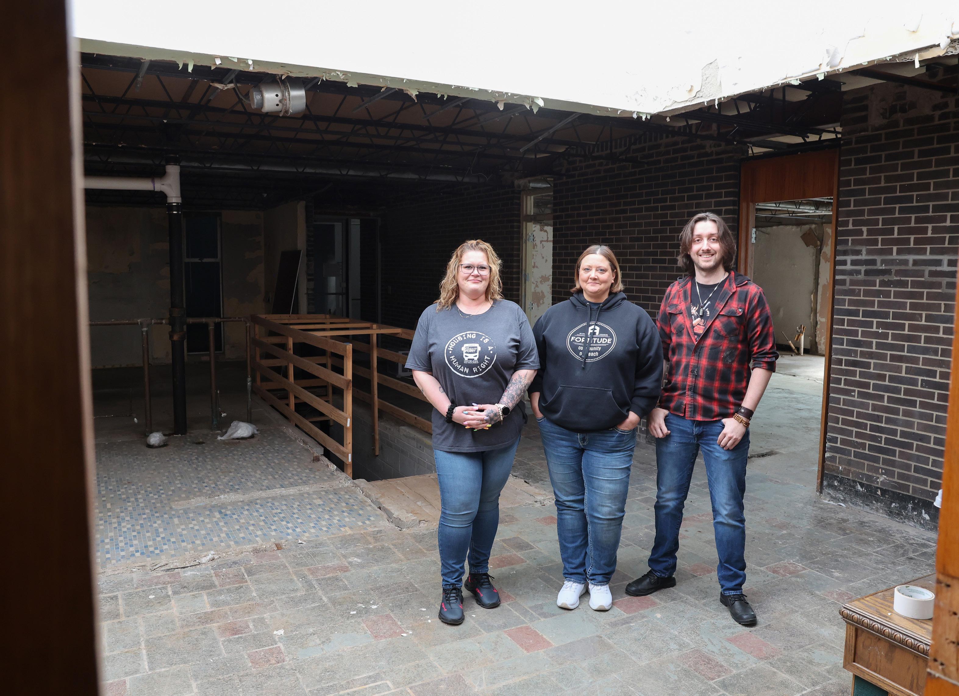 Dawn Broers (center), executive director of Fortitude Community Outreach, stands with staffers Sarah Tuttle (left) and Ben Broers, inside the shelter’s new location in East Kankakee. For its achievements this past year, Fortitude has received the 2025 Progress Award for Innovator in Social Services.