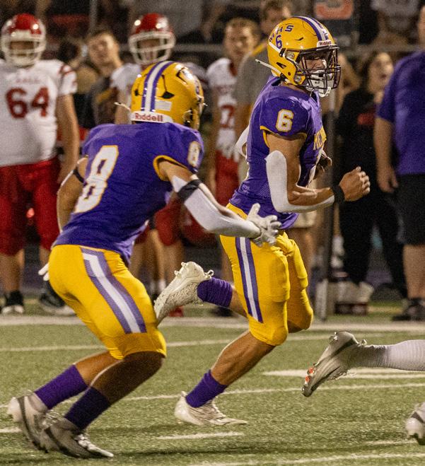 Hall-Putnam County quarterback Dylan Glynn gets past the Mendota defensive line near midfield and runs the ball in for a touchdown at The Jeff Prusator Athletic Complex on Friday, Sept. 12, 2025 at Mendota High School.