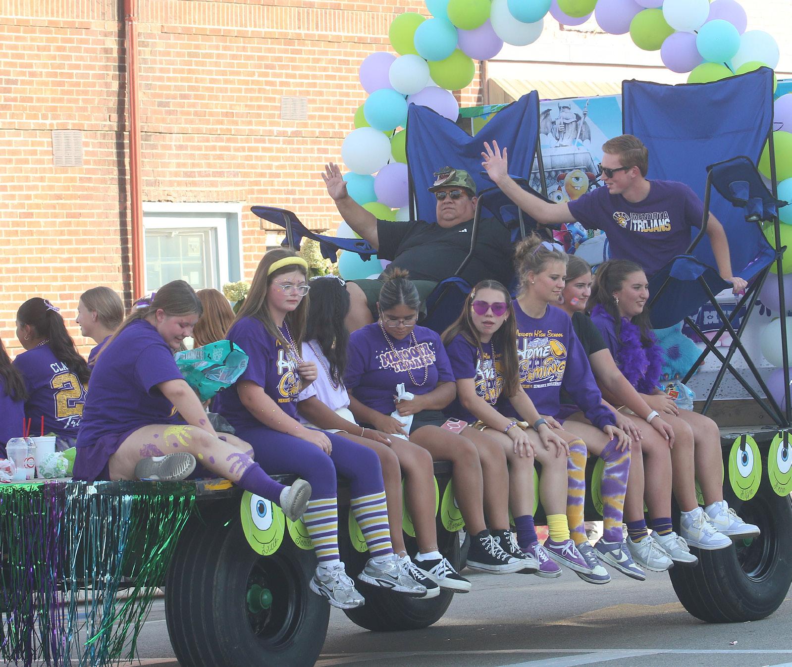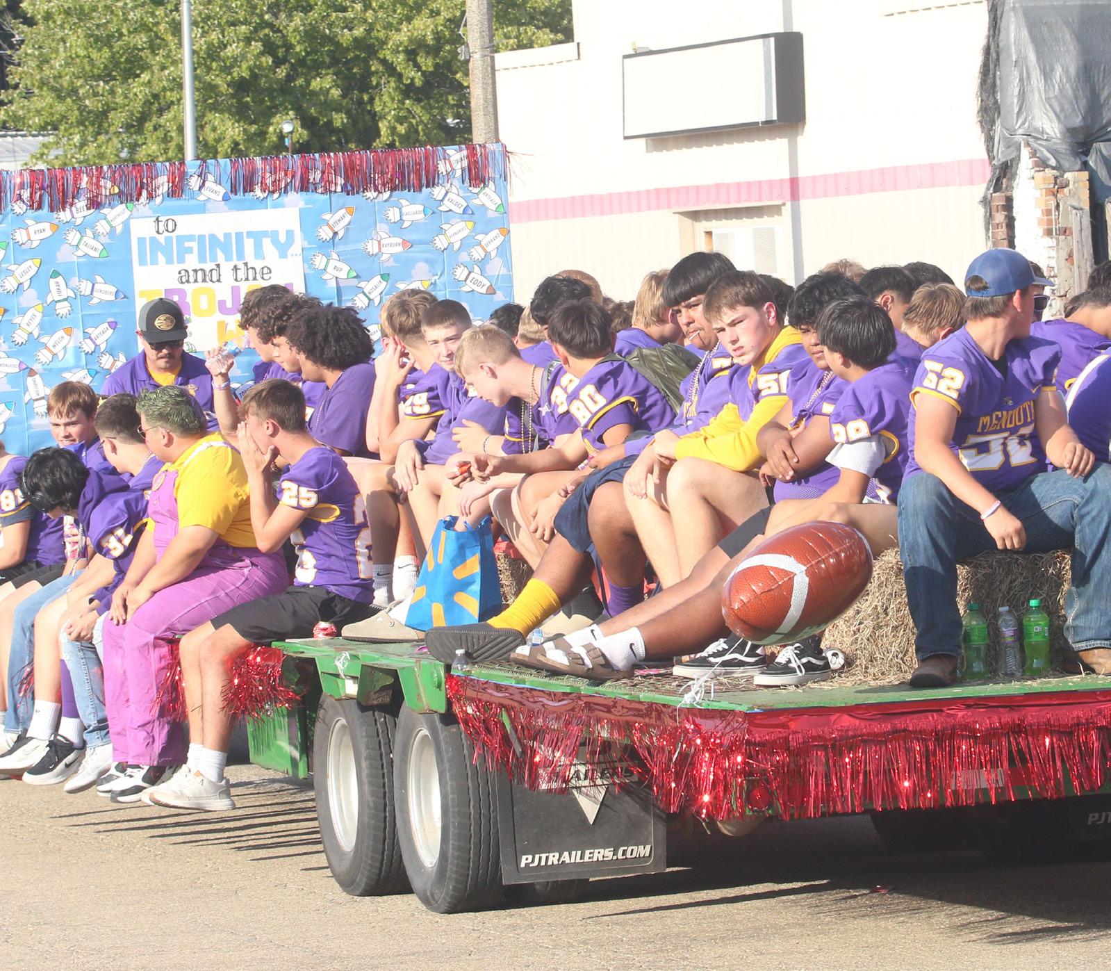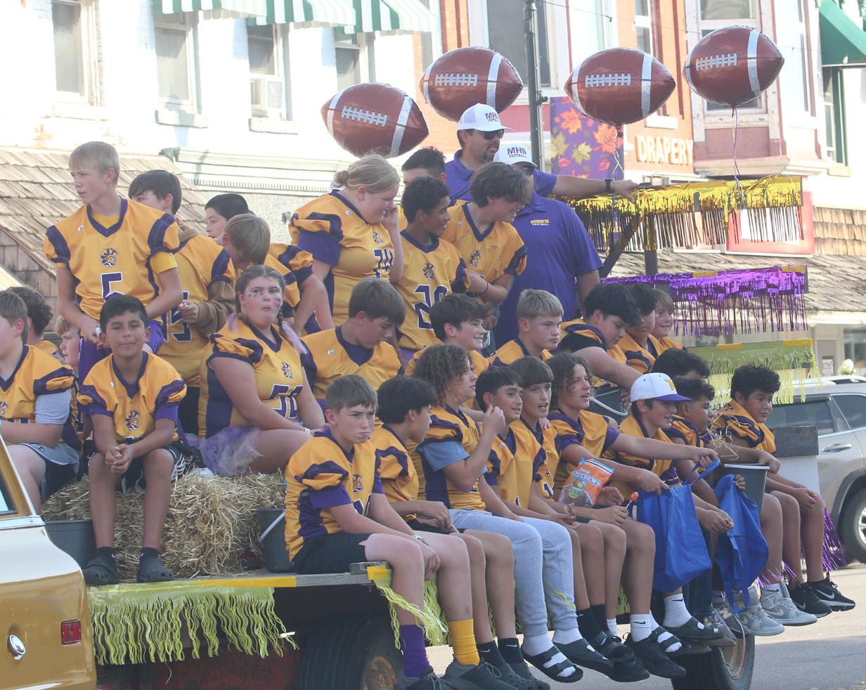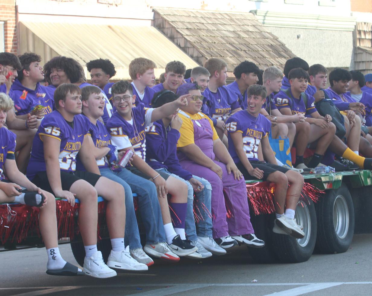 Members of the Mendota High School football team ride down Indiana Avenue on Friday during Mendota’s homecoming parade.