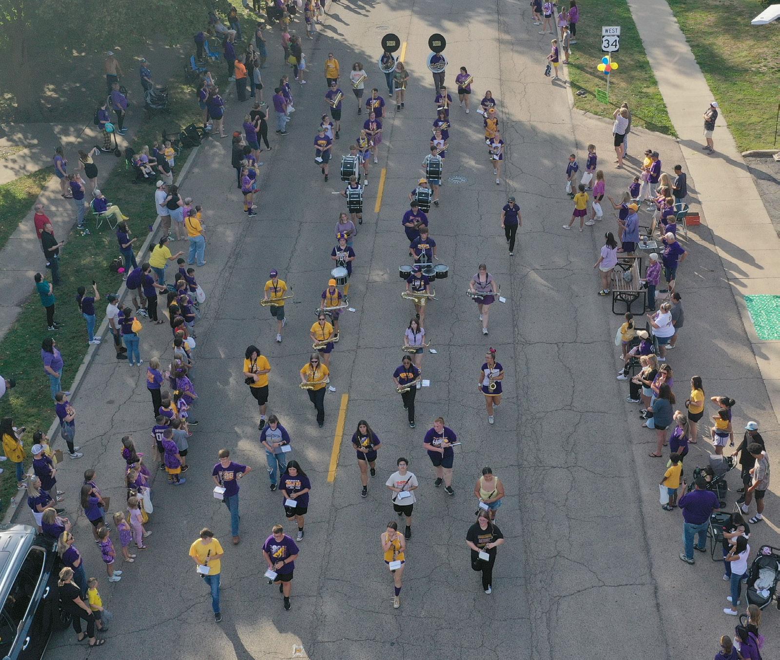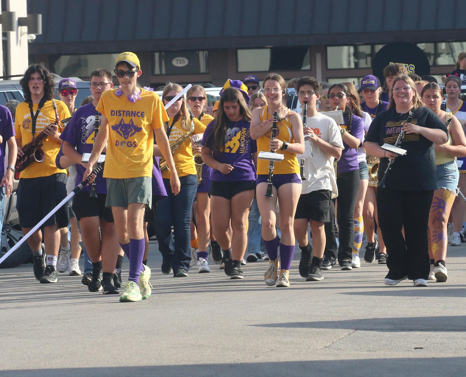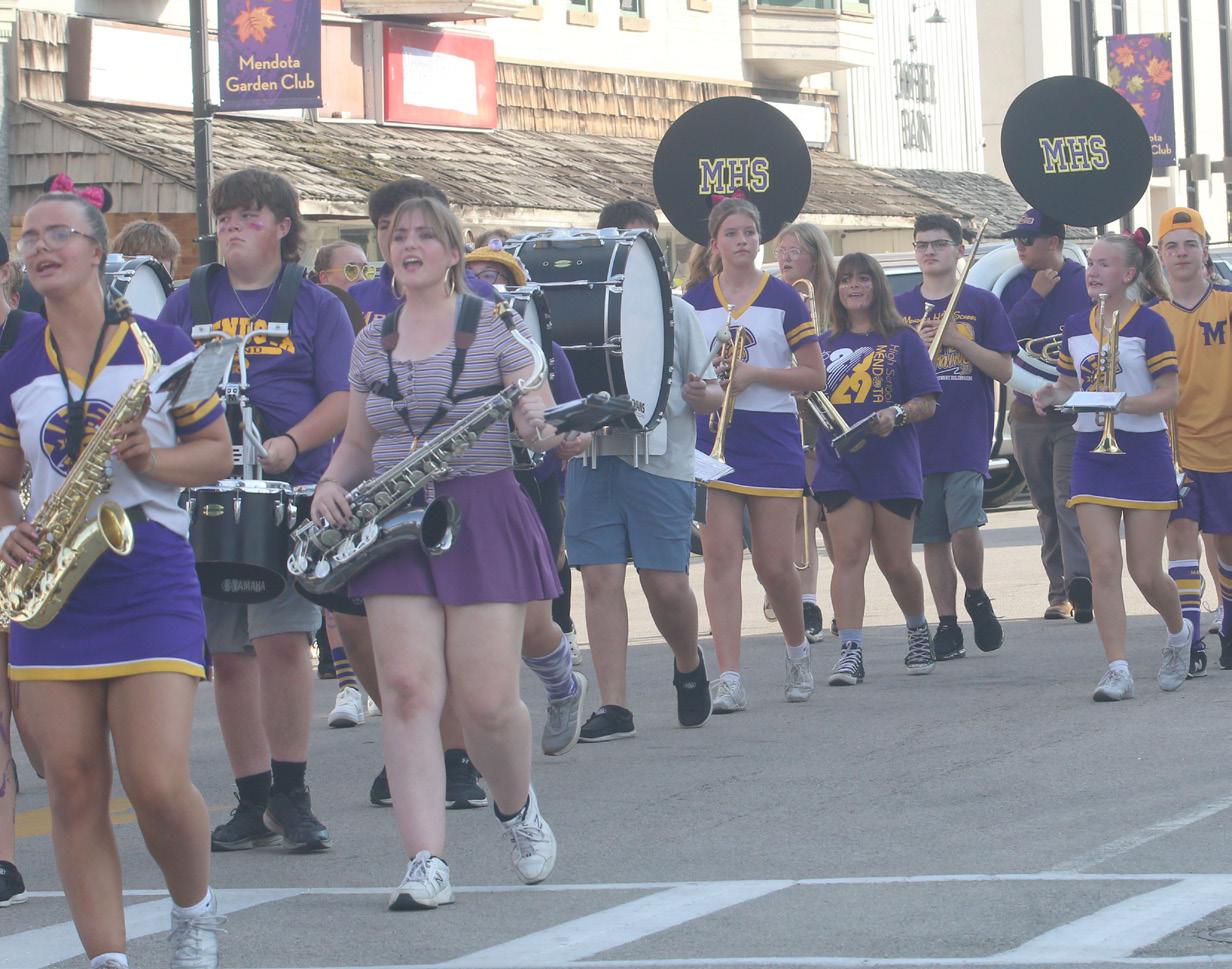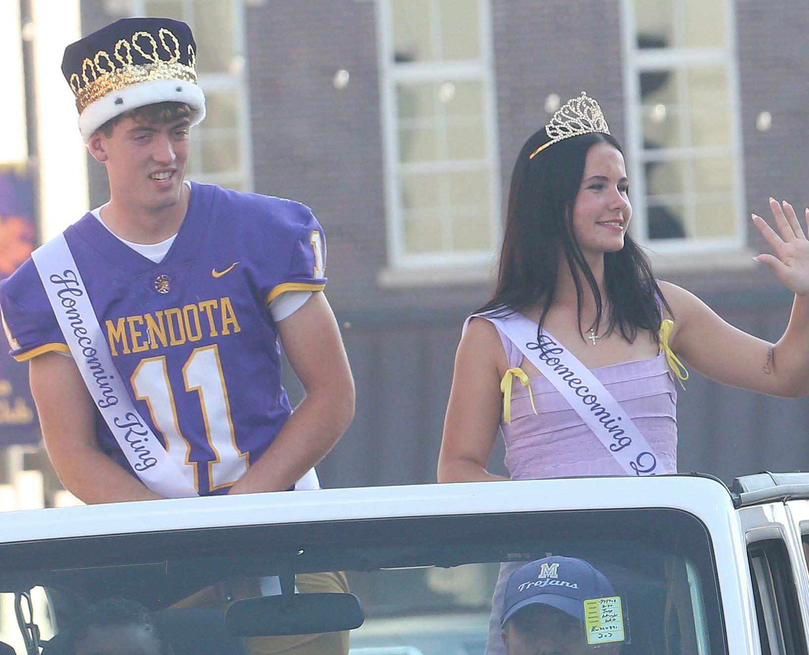 TOP LEFT: Members of the Mendota High School Band march down Indiana Avenue during the homecoming parade on Friday, Oct. 3. TOP RIGHT: Mendota High School homecoming king Aden Tillman and queen Addy Aliensworth ride down Indiana Avenue during the homecoming parade on Friday, Oct. 3. ABOVE: Members of the Mendota High School Band march down Washington Street during the homecoming parade on Friday, Oct. 3. LEFT: Mendota Northbrook Jr. High School students ride down Indiana Avenue during the homecoming parade on Friday, Oct. 3.
