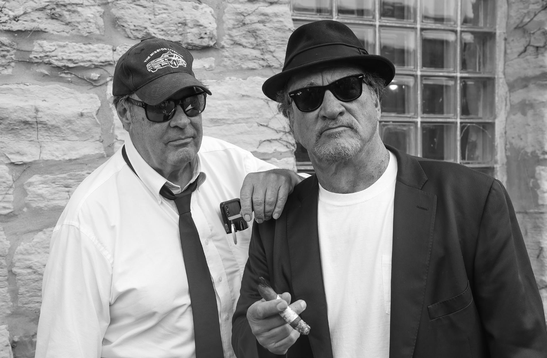 Dan Aykroyd and Jim Belushi pose for a photo at Blues Brothers Con: The Sequel on Saturday, August 17, 2024 at the Old Joliet Prison.