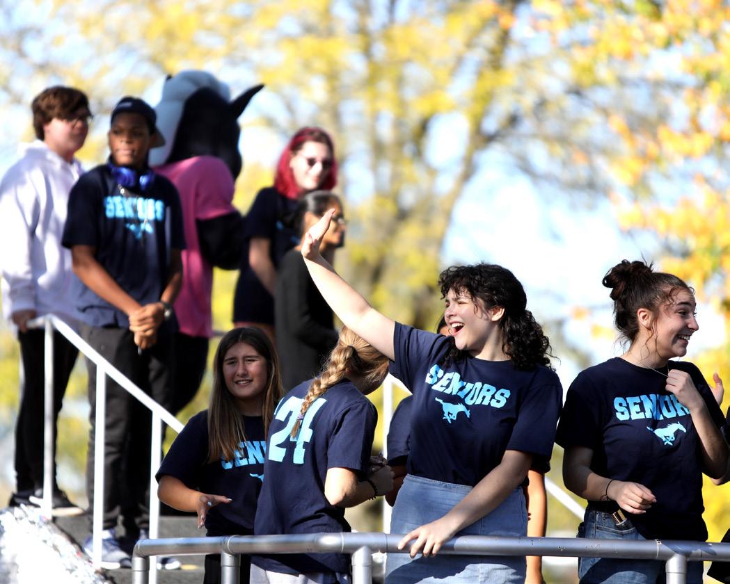 Members of the Downers Grove South senior class march in the school’s annual homecoming parade on Friday, Oct. 20, 2023.