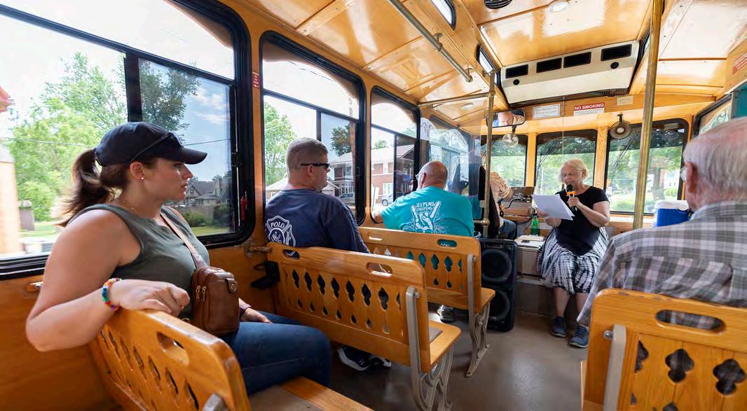 Visitors ride through Fairmount Cemetery on a trolley June 28 during a historical tour of Polo’s part in the Underground Railroad.