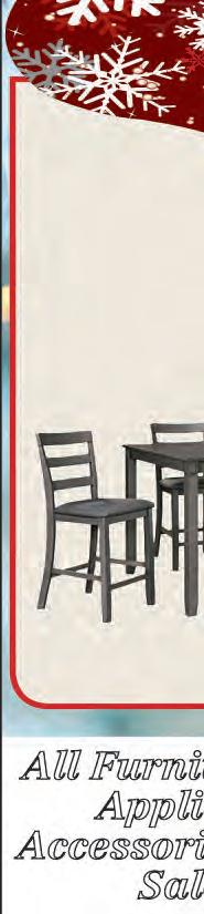 Holiday SAVINGS SALEHolidayS 5-10%OFF SalePriceandRed& Furnitur Selectfrom 40DiningSets! Ashley5PieceDiningRoomSet 509.95 MattressSetsare SalePriced! GreatSavingson Headboards,Chest, Dressers, Futons, NightStands,Bunk Beds,Sleepersand much,muchmore! Over40 instock tainment CentersandTV StandsonSale $479.97 Benches,Desk,Living Ta andBeanBags areallSalePriced! All CandlesonSale Sofasstartingaslowas $559.95 5-10% OFF and Red & Sale PriceTagPrice on Furniture Only* Select from over 40 Dining Sets! Ashley 5 Piece Dining Room Set $ AllFurniture, Mattress, Appliances,and AccessoriesareHoliday SalePriced! HolidayHours:Mon-Fri9-6;Sat9-4;Sun12-4 20E.StephensonSt.,DowntownFreeport 815-235-4911 •rite-way.info 18Months/18Payments,NoInterest OR90DaysSameasCashw/ approvedcredit FINANCING AVAILABLE Benches, Desk, Living Candles on Sale Woodwick Sofas starting as low as Headboards, Chest, 479.97 Night Stands, Bunk Beds, Sleepers and much, much more! Great Savings on 12-4 Holiday Hours: Mon-Fri 9-6; Sat 9-4; Sun 20 E. Stephenson St., Downtown Freeport • rite-way.info 18 Months/18 Payments, No Interest OR 90 Days Same as Cash w/ approved credit Room Table Sets, and Bean Bags are all Sale Priced! All Serta and Over 40 in stock Therapedic Mattress Sets are Entertainment Centers and TV Sale Priced! Stands on Sale HolidayHours:Mon-Fri9to5;Sat9-4;Sunday12-4 AskaboutOurHoliday FinancingOptions.,NoInterest OR90DaysSameasCashw/ approvedcredit Choosefrom:Ashley, Flexsteel,BestChair,Best Craft,All Wood,Bernards, AAmerica,UltraComfort& Many, ManyMore BrandNames! Over 16CURIOS on Sale! PerdueDesk priced at $189.95