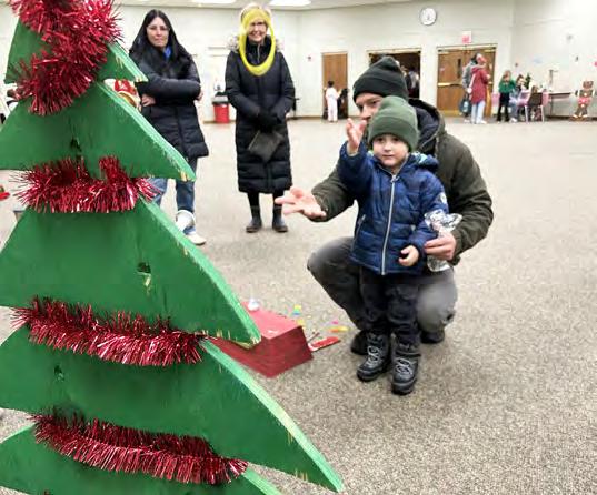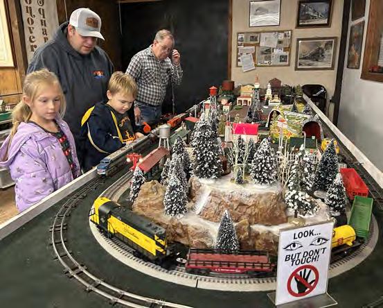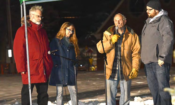 ABOVE: Tate Klotz, 3, of Oregon tosses a ring at a Christmas tree with the help of his dad, Kyle, at the Oregon Candlelight Walk’s Kid’s Winter Carnival on Dec. 6 at the United Methodist Church. ABOVE LEFT: Tim Grote and his children, Brielynn, 7, and Jase, 3, watch a model train at the Blackhawk Model Train Club in Conover Square Mall during Oregon’s Candlelight Walk. LEFT: Bob Vogl, the husband of the late Sonia Vogl, speaks before the lighting of the Christmas tree at Oregon’s Candlelight Walk. The tree was dedicated in memory of Vogl and stands with a sign that reads: “In memory of Sonia Vogl. Her generosity and dedication to our community has not gone unnoticed. Thank you for keeping our community ‘lit up’ over the past several years!”