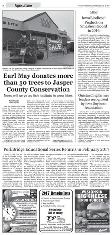 if they were not donated. He said individuals sometimes ask about using the trees on private property, but he likes to help out the public lakes and ponds if possible. Jasper County Conservation thanked Earl May for the donation via Facebook and included a photo of some trees being put to use. Jasper County Conservation Naturalist Greg Oldsen said the trees were used at two locations this winter - a nature center site just east the of the sheriff ’s department and another property west of Monroe. Trees are important for many fish species. Fish use underwater structures for spawning, protection and shade. The trees donated by Earl May will provide Jasper County fish communities with an abundance of uses.