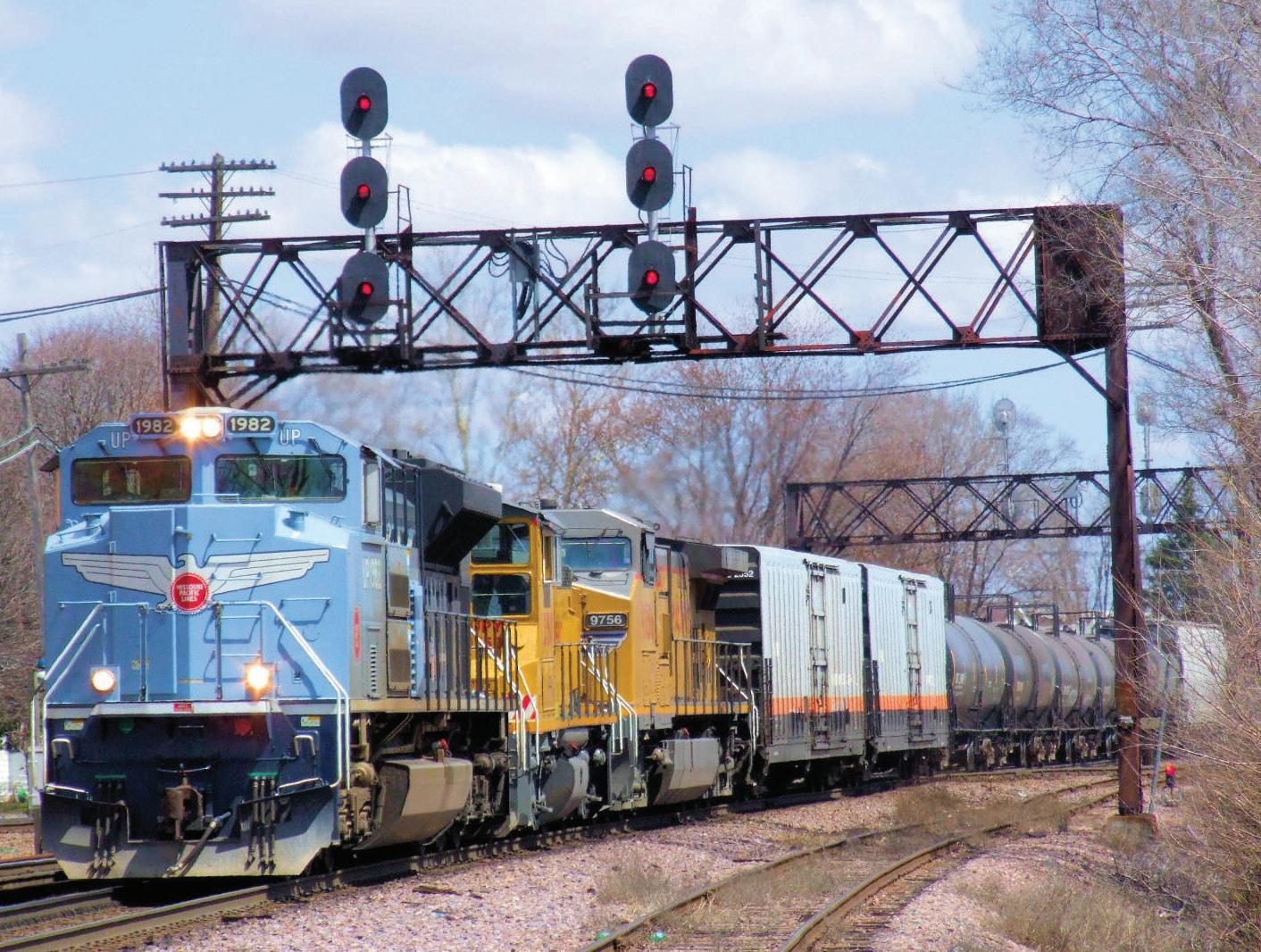 The railroad later became the Chicago and North West-ern and today is owned by the Union Pacific (UP). Sixteen years later the Chicago & Iowa Railroad was built through Rochelle in 1870 and it crossed over the Air Line Railroad between 11th Street and 12th Street. The railroad was later called the Chicago, Burlington, and Quincy before becoming the Burlington Northern Santa Fe (BNSF). Today these two railroads daily haul millions of tons of merchandise on at least 80 to 90 trains a day through Rochelle in a 24 hour period. This has made Rochelle a “hot spot” for train watching, drawing visitors from every state in the nation and world wide. Because of