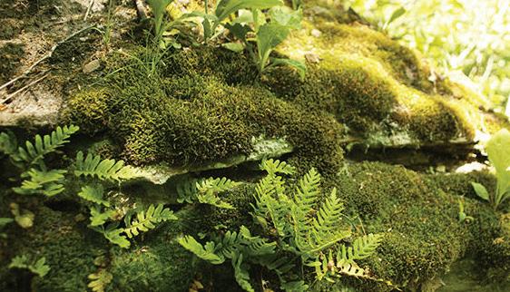 The mill spring, the largest in the park, provided water power for the largest grist mill in Lee County, constructed in 1847. Deep, pleasant valleys protected by limestone and sandstone bluffs made ideal homesites shielded from cold winter winds. Many ponds and rock outcroppings along Franklin Creek carry names given them by pioneer families. ■