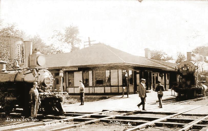 Davis Junction, as its name states, is the crossing of the two rail lines. When the rails were built, the new community took over the Post Office that previously had been a couple of miles to its southeast in Beacon. Davis Junction was named for Jeremiah Davis, who came to area in 1859 and served in the Illinois Legislature in 1870 and 1871. He donated land toward the right-of-ways of both rail lines and platted a town around the intersection, with streets named for family members and trees.