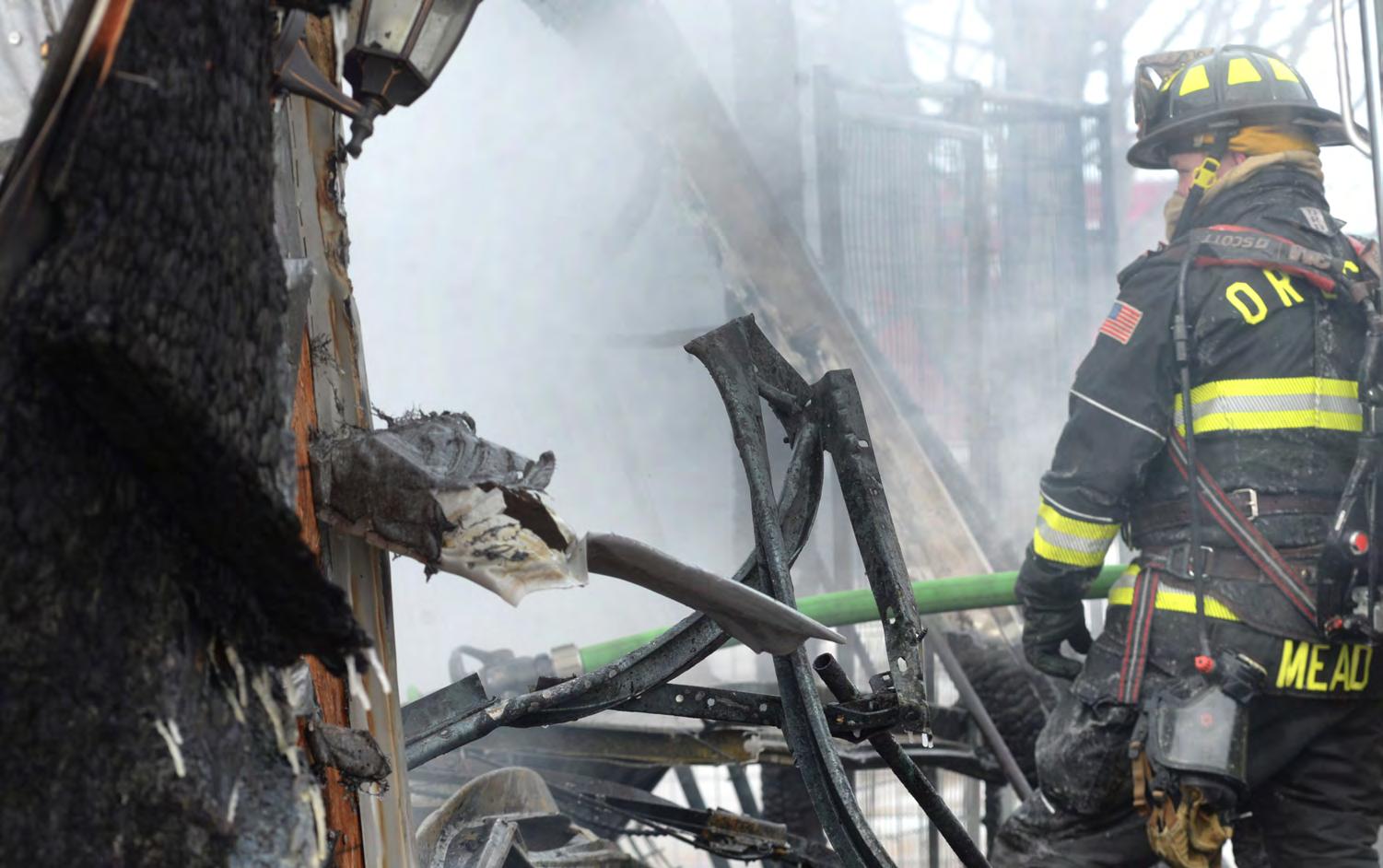 Crews remained on the scene throughout the day, continuing to douse hot spots.