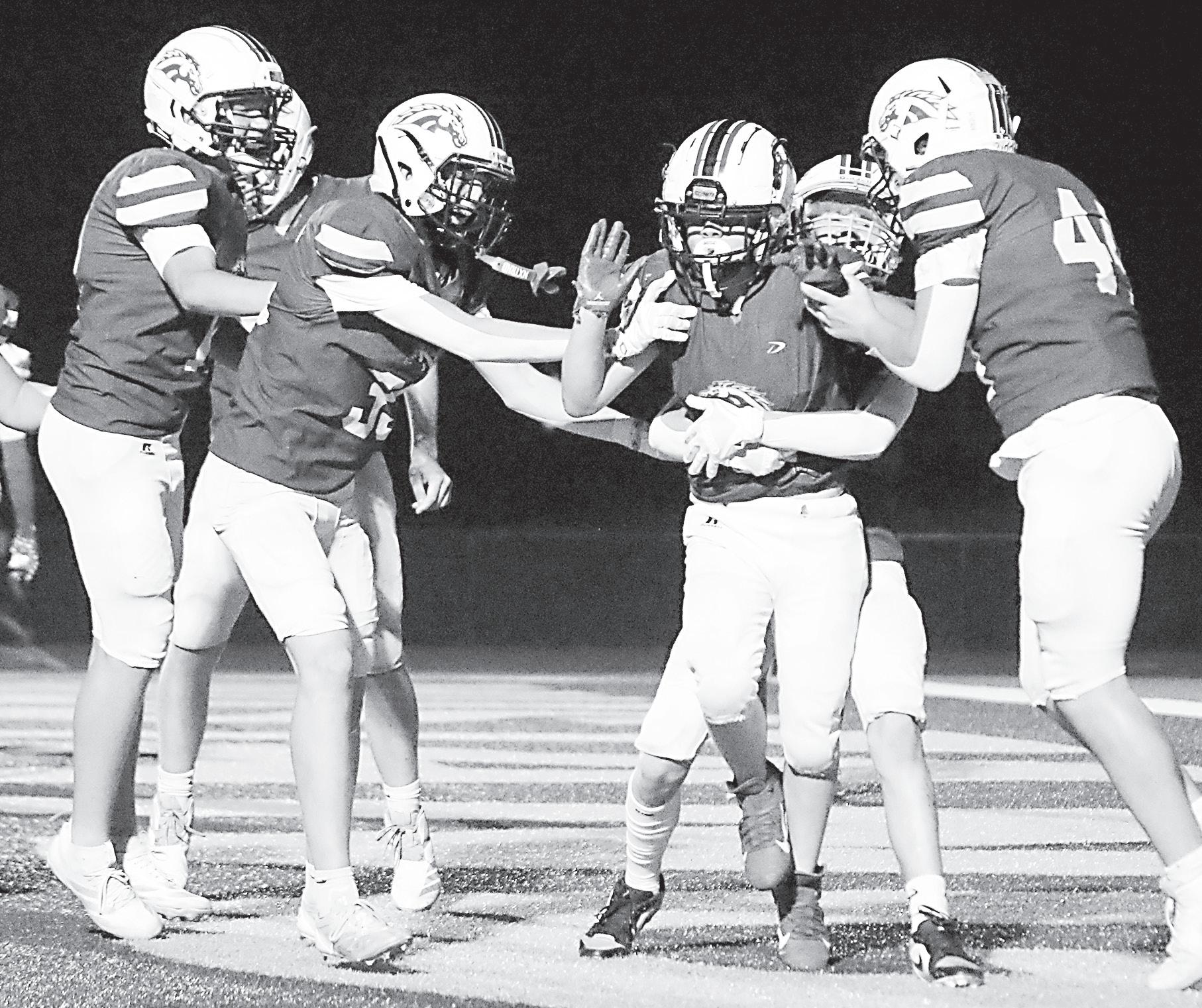 Ryker Clark made it 48-0 with a 48-yard TD run in the third and then Chase Masterson’s 3-yard TD run in the fourth capped the scoring. It was the first career varsity touchdowns for both players.