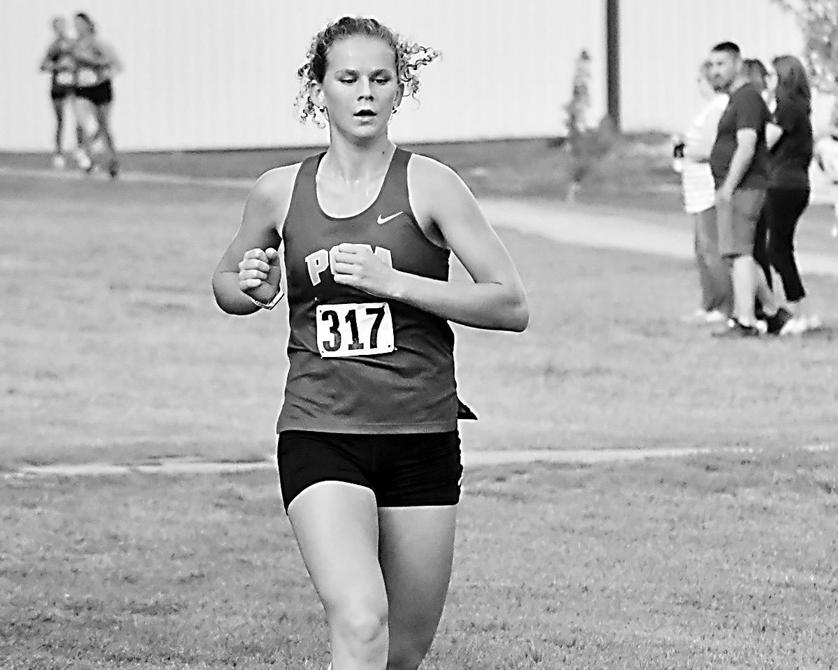 PCM junior Bailey Wheeler competes in the team’s annual home meet earlier this season. The state-ranked Mustangs were edged by Pella Christian during a meet at Chariton on Oct. 7.