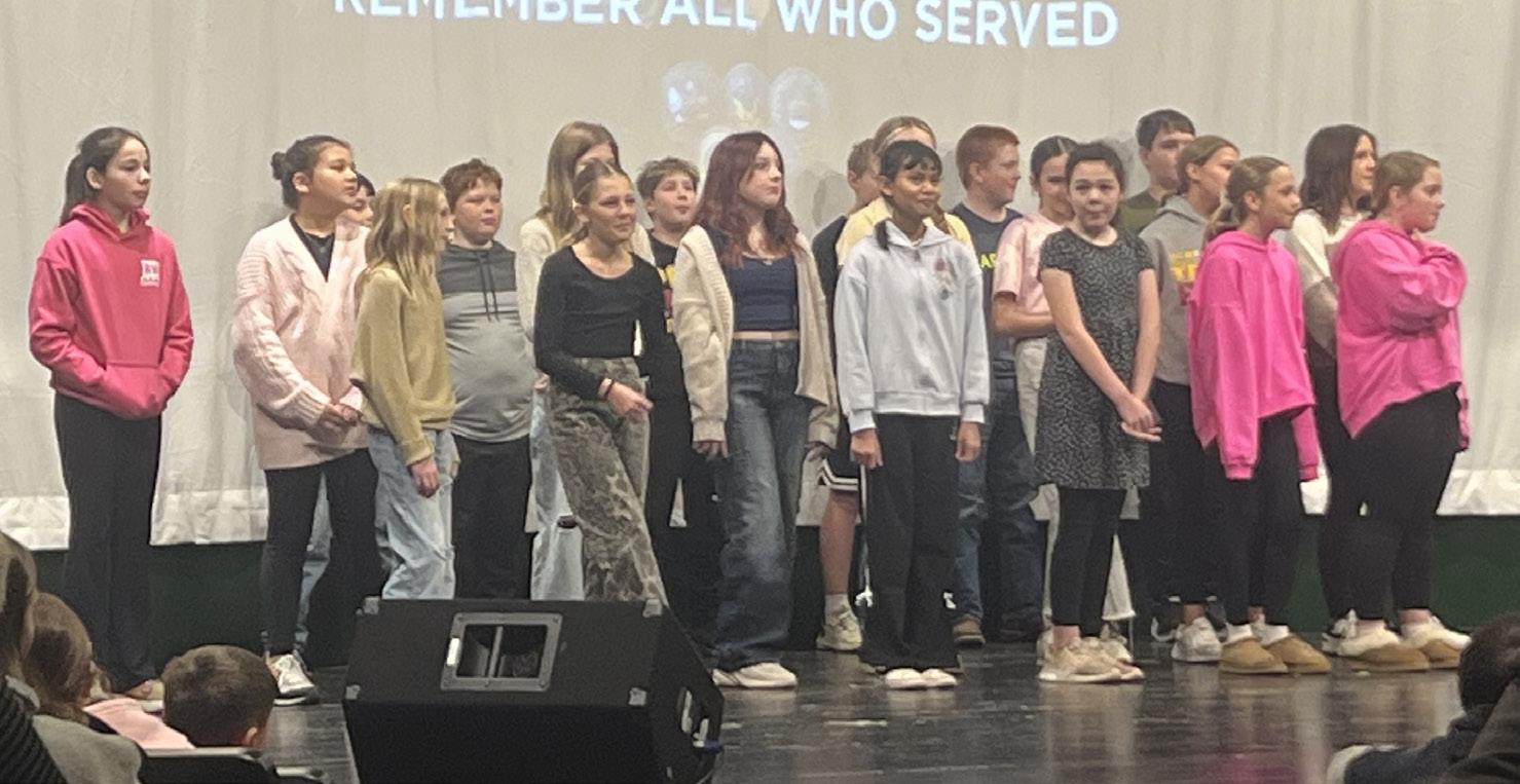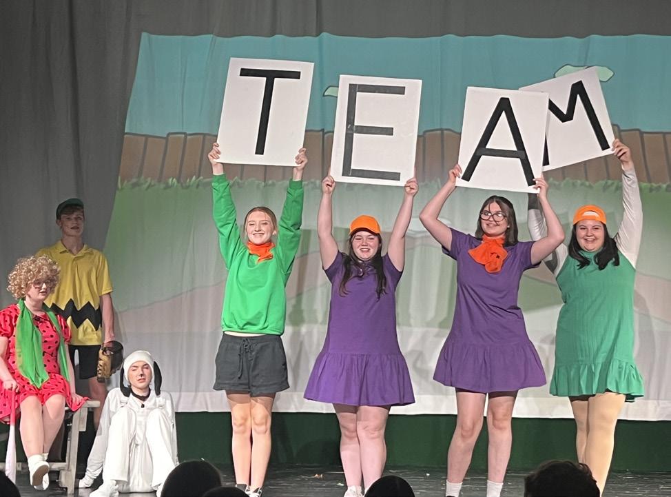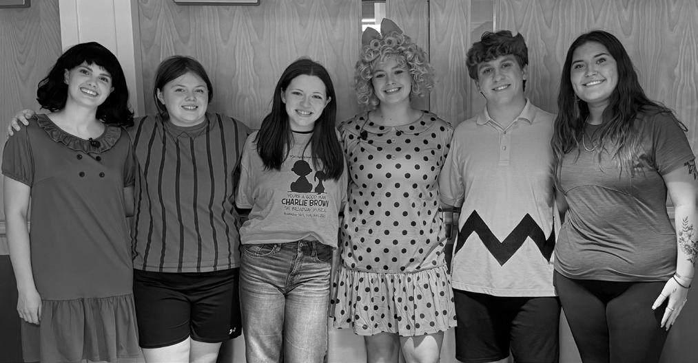 Seniorsfromlefttoright:PiperClark,KeiraStone,AddisonBeener,EmilynDavis, CarterDudley,andKeelySpencerstandtogetheronFriday,Nov.14,theiropening nightfortheperformance,“You’reAGoodMan,CharlieBrown”.PhotobyE.Greaves.