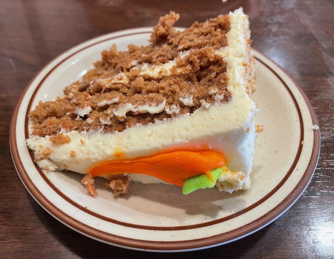 yielded to temptation – oh, those crafty sneaks behind the counter – and tucked into carrot cake and chocolate layer cake.