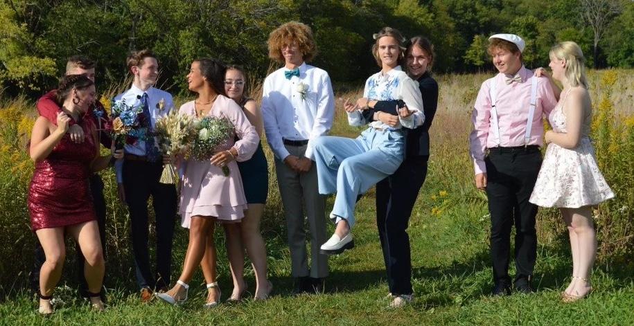 A group of seniors at a photoshoot before homecoming. Photo credit Michaela Froisland.