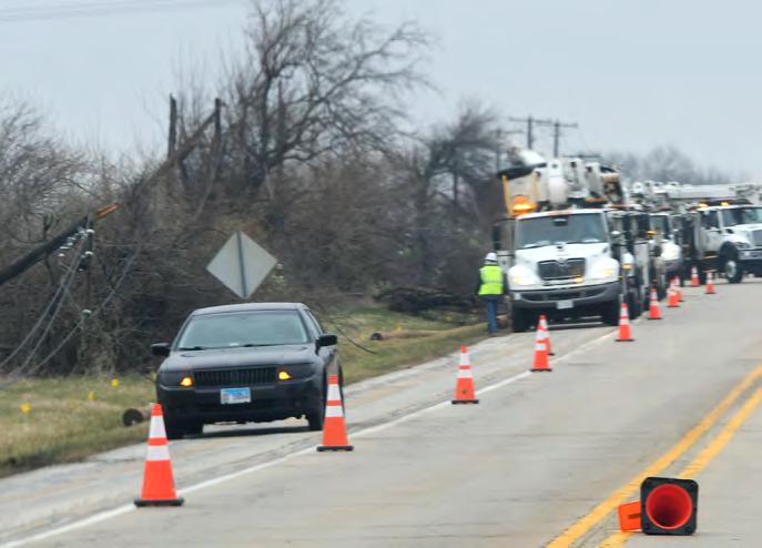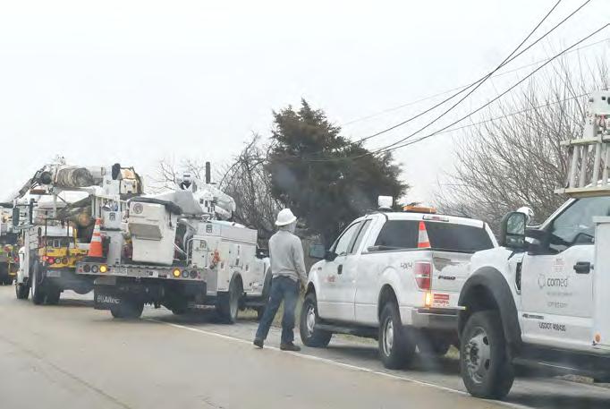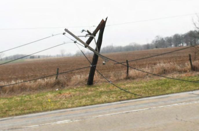ComEd crews were busy working on the west side of Illinois 2 after Tuesday’s hail storm broke off electrical poles knocking electricity out to Grand Detour, including the village’s only polling place.