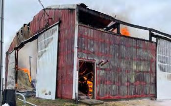 fire. Upon arrival, command observed a large outbuilding fully involved and decided to go to a second alarm right away for additional manpower and water. Crews battled high winds making fire suppression more challenging during operations on the fire ground.