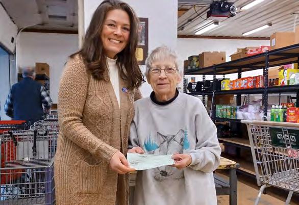Photo provided by Jeff Short Cynthia Reynolds of the Polo Lions Club presents Darlene Shafer, Polo Food Pantry treasurer, with a $2,000 donation. The donation was made April 4.